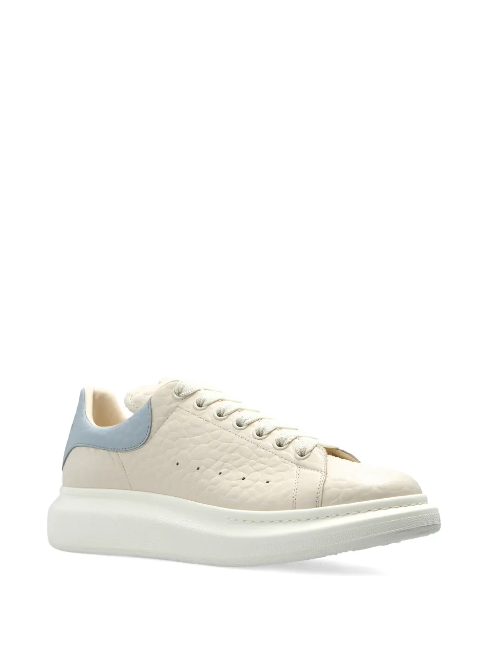 Белый цвет "bone", текстурированная отделка, задник на пятке, шнуровка, круглый носок, платформа. Для уменьшения воздействия на окружающую среду и сокращения потребления хлопка Alexander McQueen больше не будет предоставлять пыльник к своим кроссовкам.