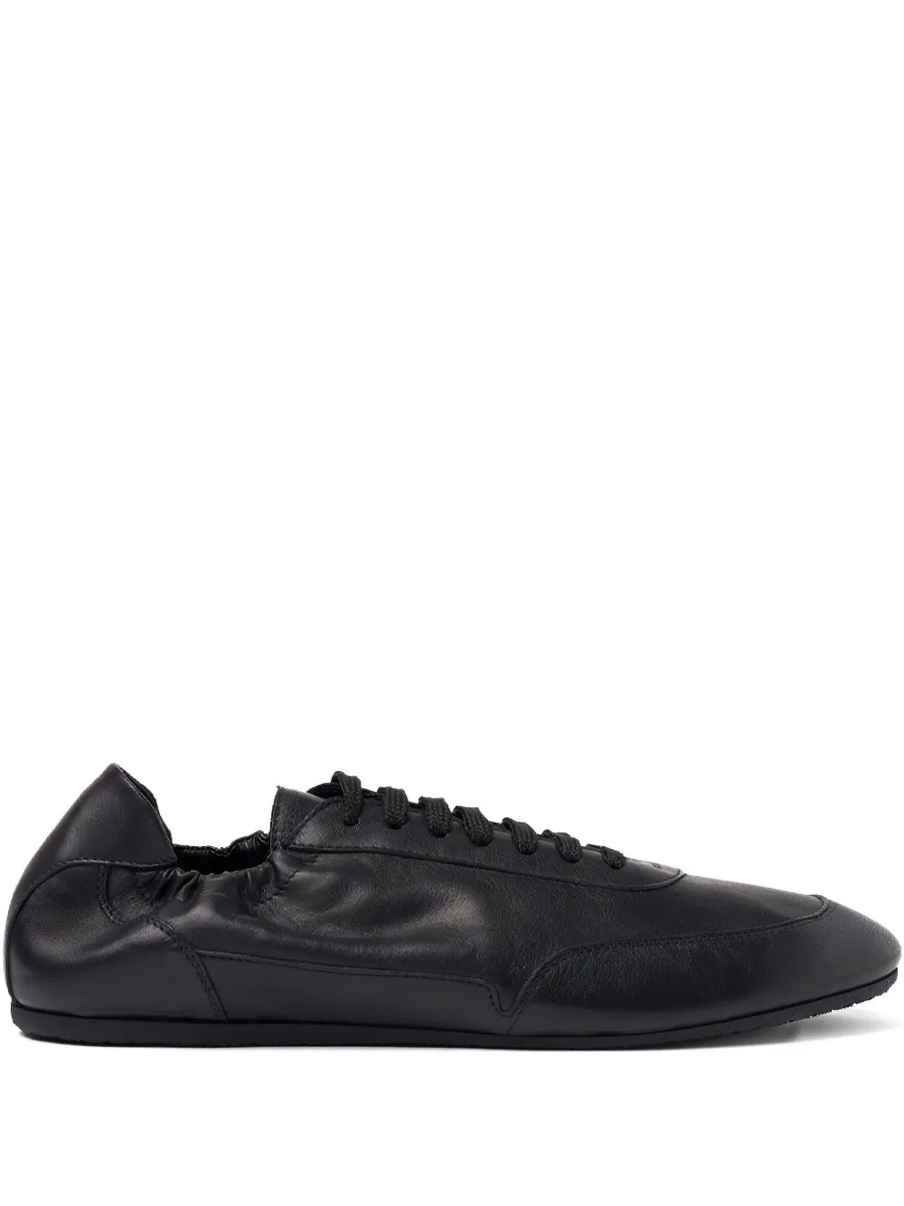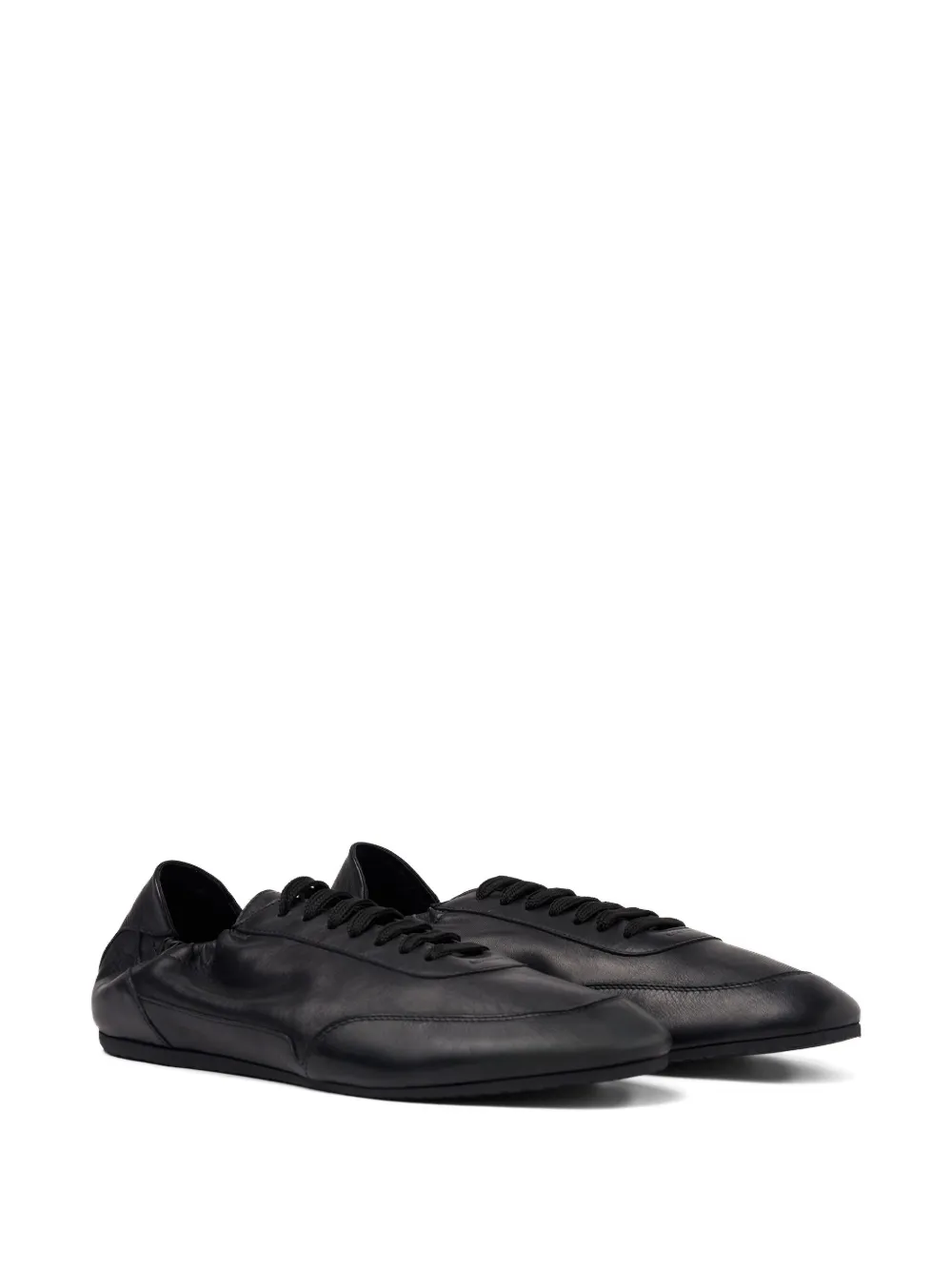 Черные кожаные ботинки на шнуровке с круглым носком и плоской подошвой