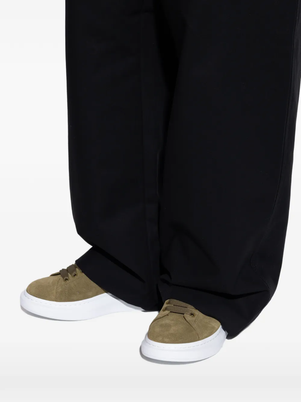 Зеленый цвет, подошва на платформе, шнуровка, круглый носок, логотип на пятке, резиновая подошва. С целью уменьшения воздействия на окружающую среду и сокращения потребления хлопка Alexander McQueen больше не будет предоставлять пыльник к своим кроссовкам.