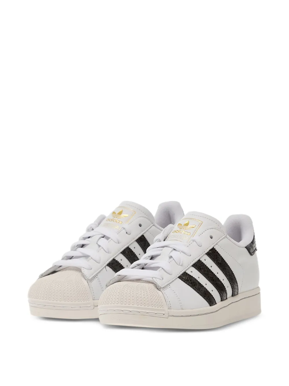 Белые кроссовки с полосками, текстурированным мысом, шнуровкой, логотипом, отделкой пятки под змеиную кожу