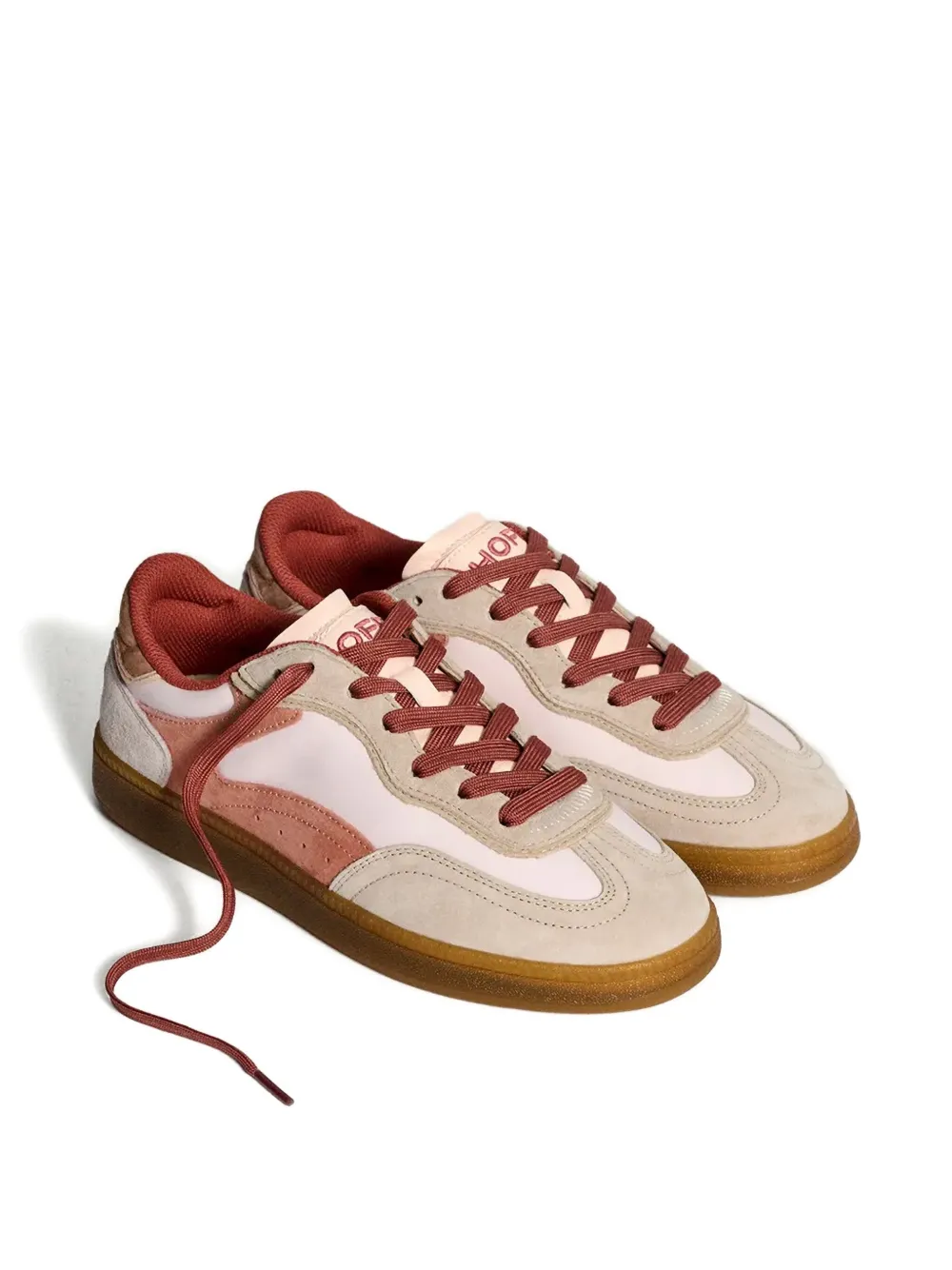 Розово-бежевый многослойный дизайн, шнуровка, резиновая подошва, логотип