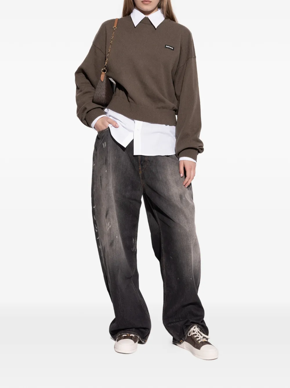 Коричневые низкие кеды с застежкой на шнуровке спереди, люверсами золотистого цвета и плоской резиновой подошвой