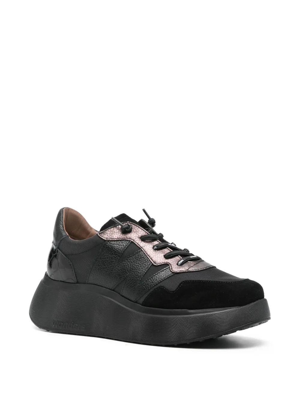 Кожаные кроссовки на платформе с панелями Wonders, черный