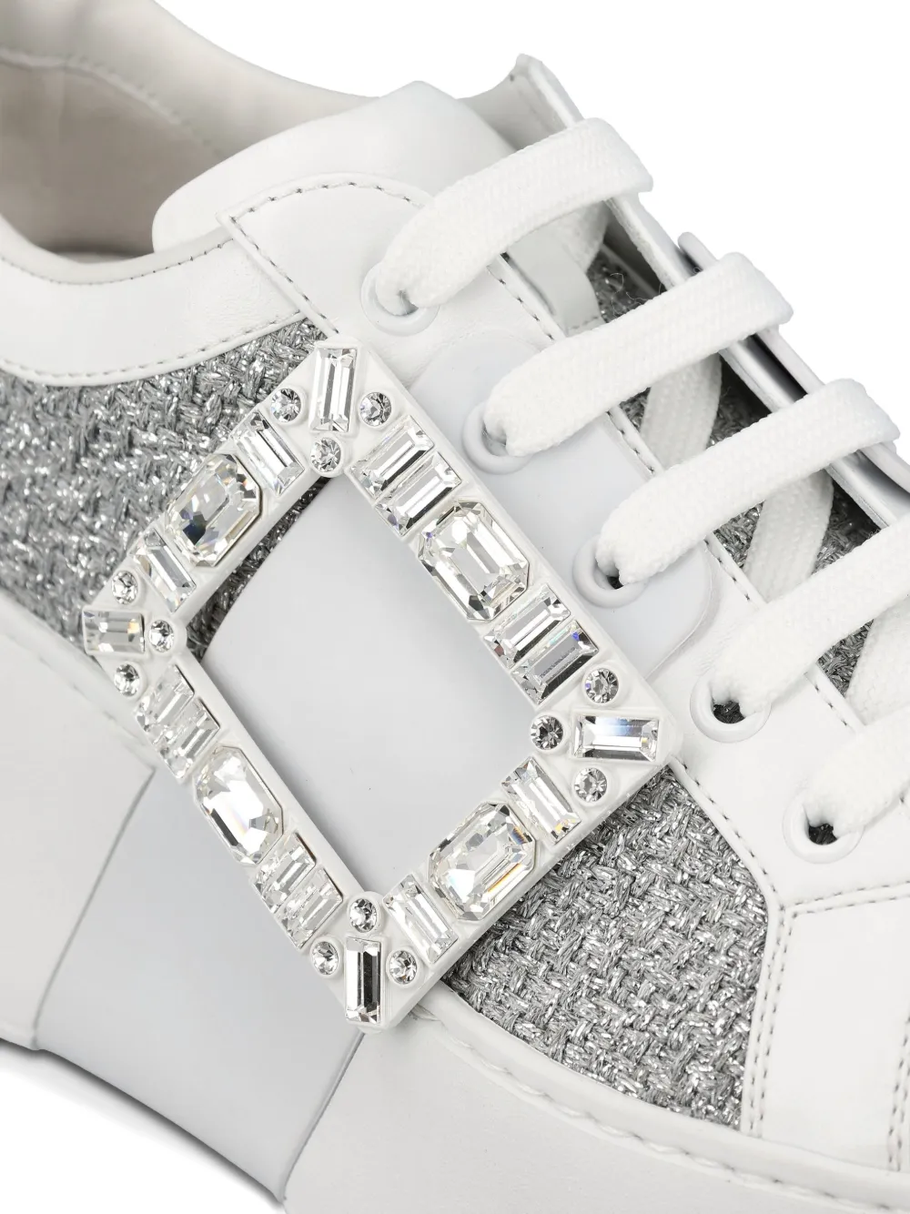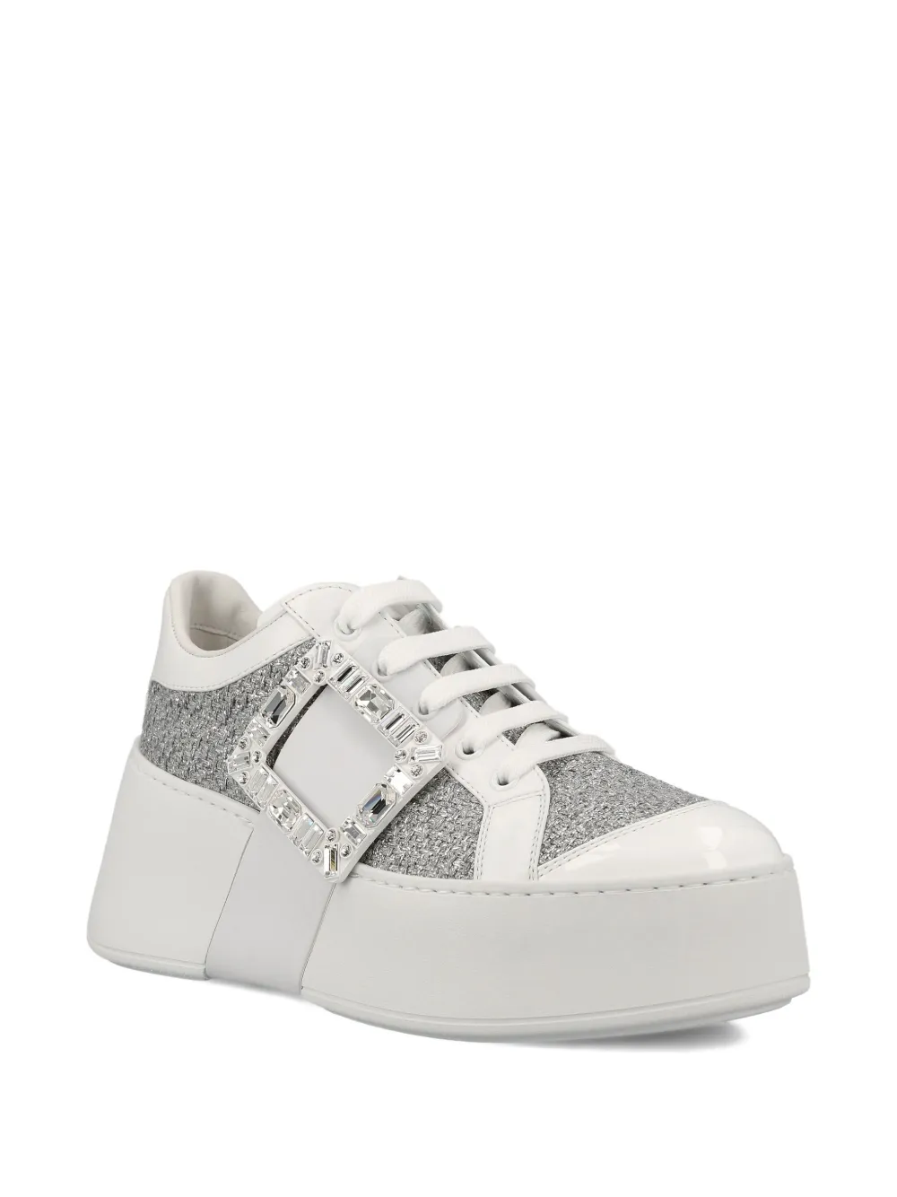 Белый пряжка, украшенная кристаллами декоративный блеск платформа шнуровка
