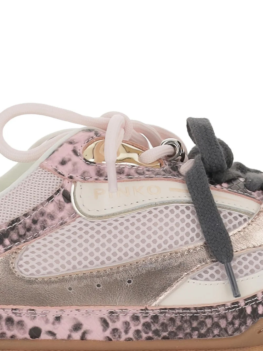 Розовые кроссовки с эффектом змеиной кожи, логотипом, круглым носом и резиновой подошвой