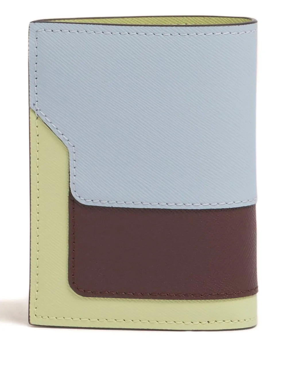 Светло-голубой кожа застежка на кнопке дизайн с цветовыми блоками отделения для карт логотип с золотистым тиснением