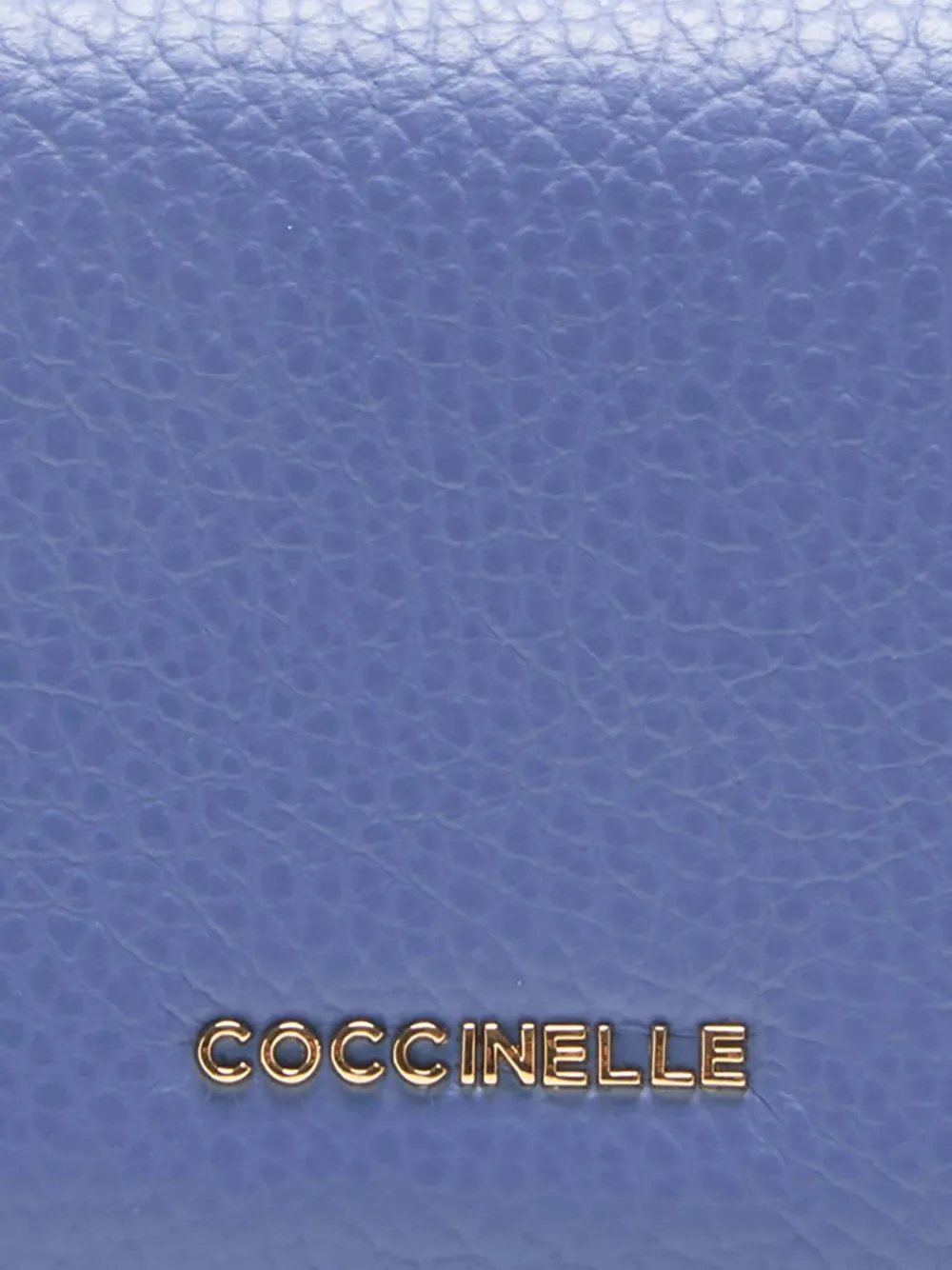 Синий металлизированный цвет, логотип в виде букв, клапан сверху, застежка на кнопку. Этот товар поставляется с фирменной стандартной двухлетней гарантией.