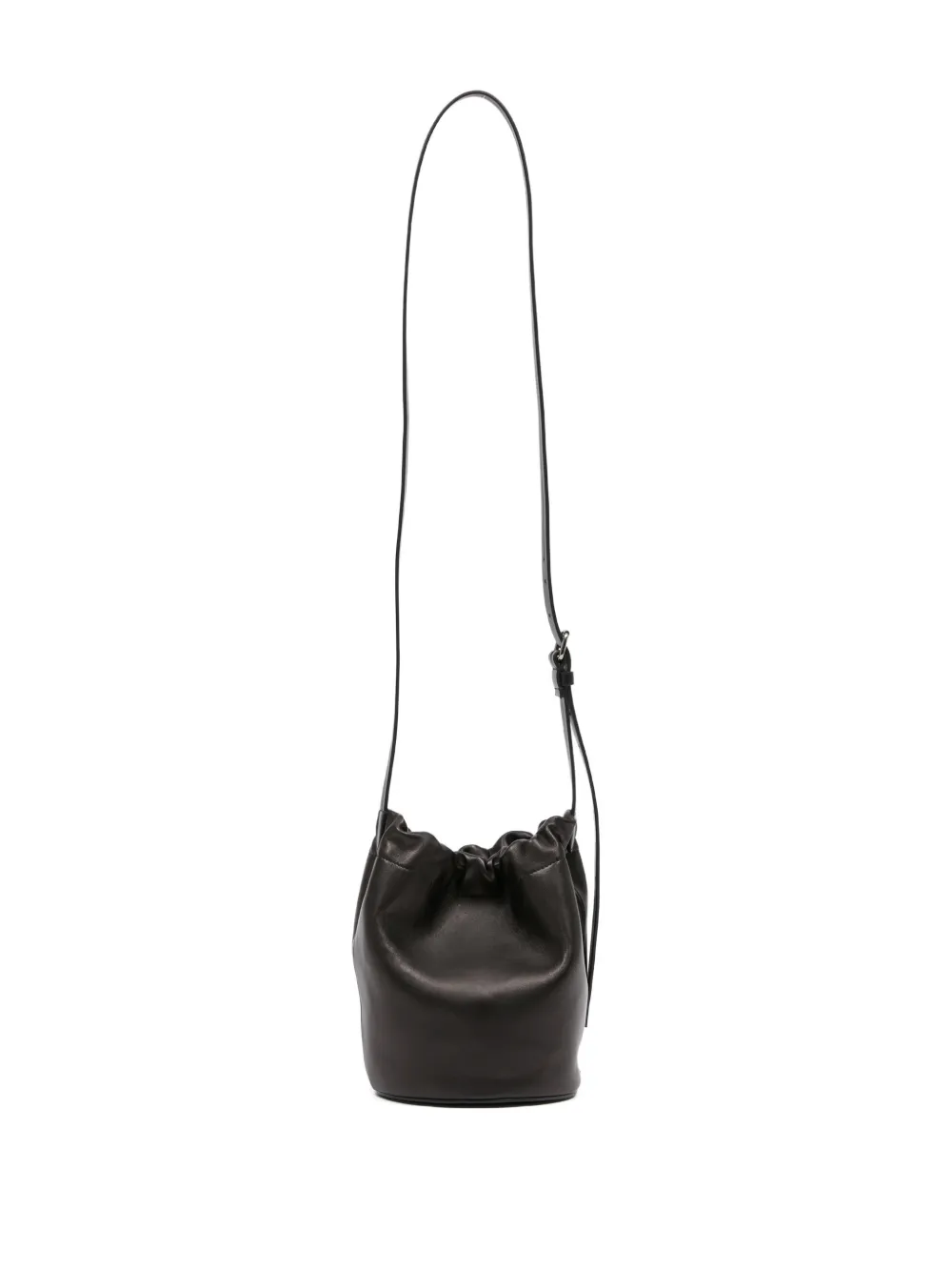 Темно-коричневая овечья кожа, застежка на кулиску, регулируемый плечевой ремень, тональная строчка, фурнитура серебристого оттенка