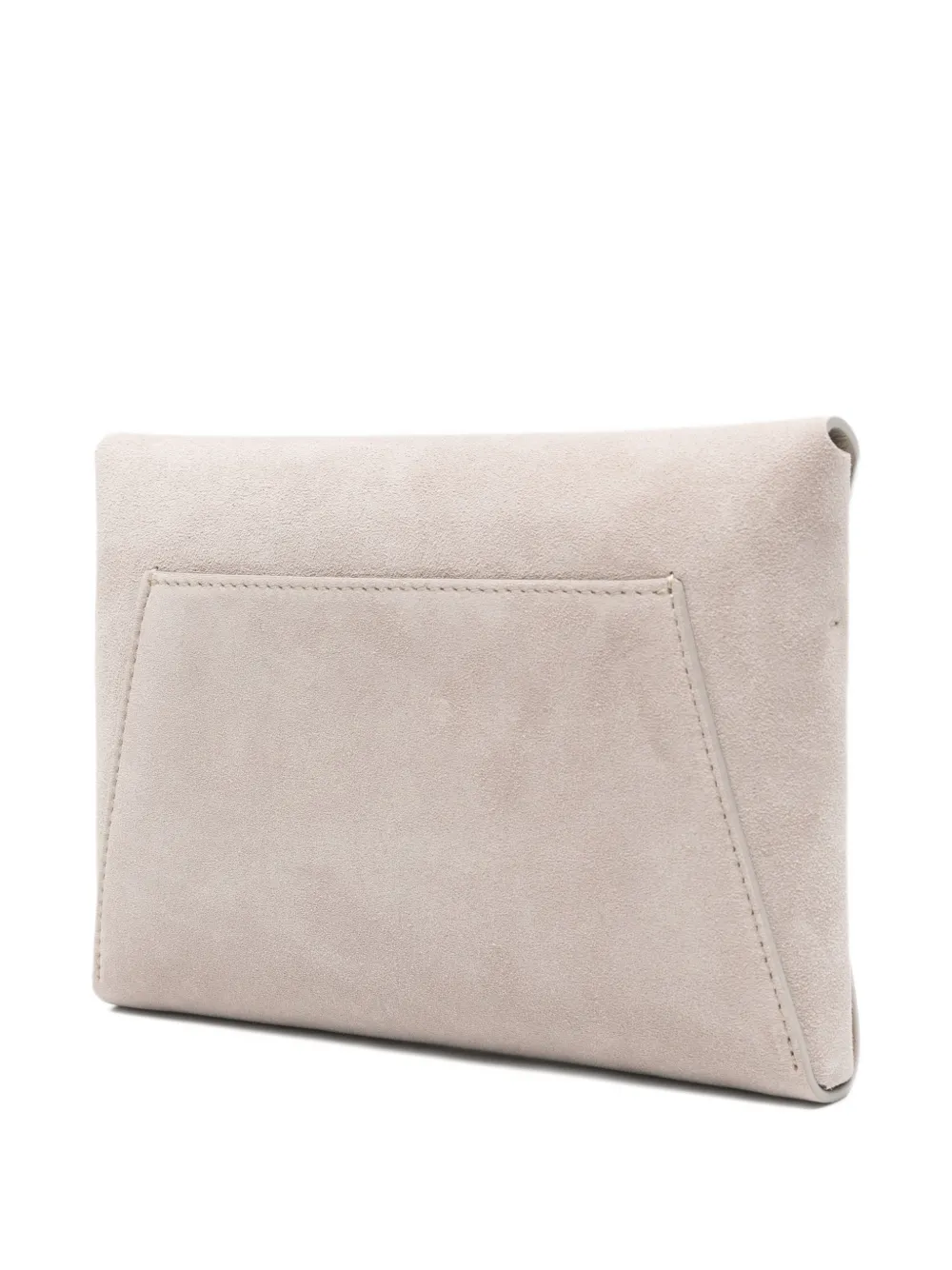 Серая сумка-конверт с цепочным ремешком, задним накладным карманом и логотипом. В комплекте имеется защитный чехол для хранения.