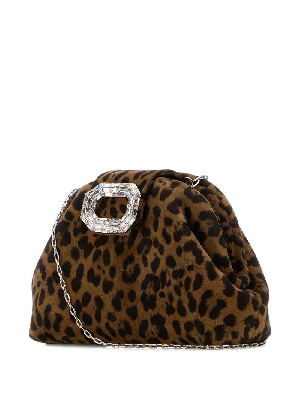Коричневый леопардовый принт, фурнитура серебристого цвета, плечевая цепочка, откидной клапан, украшение кристаллами