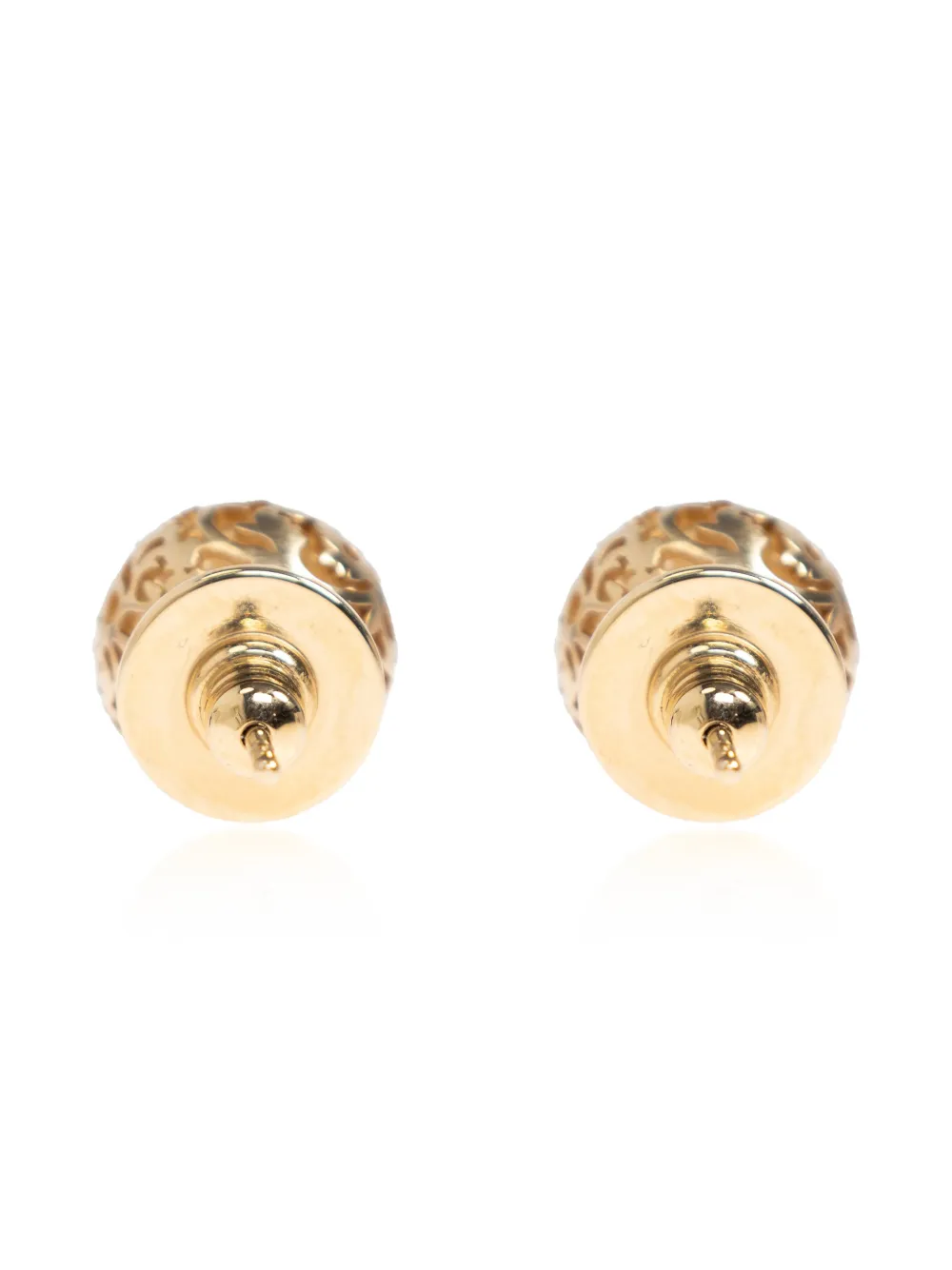 Золотистые серьги-гвоздики с проколом и шарообразной формой, фиксируются с помощью застежки. Эти серьги продаются в паре.
