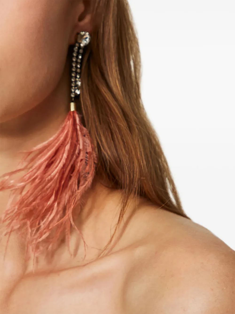 Золотистый оттенок декор из перьев украшение кристаллами Серьги поставляются в паре.