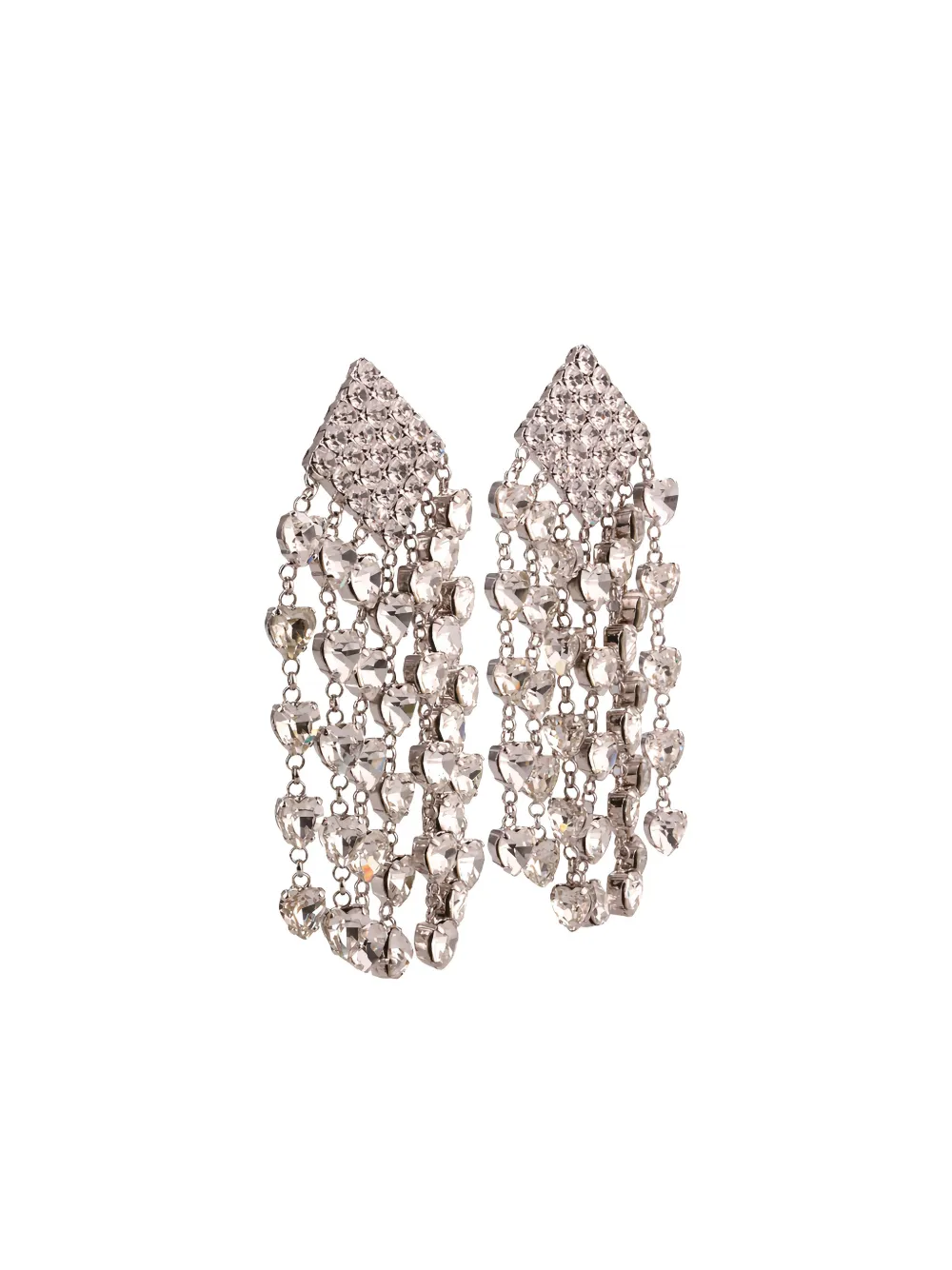 Серебристый оттенок, отделка в виде сердца, украшение кристаллами. Эти серьги продаются парой.