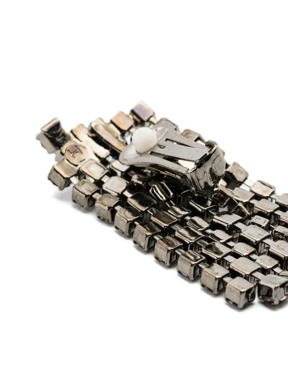 Серебристый оттенок, украшены кристаллами, линейное расположение в несколько рядов, застежка-клипса, круглые кристаллы. Эти серьги идут в паре.