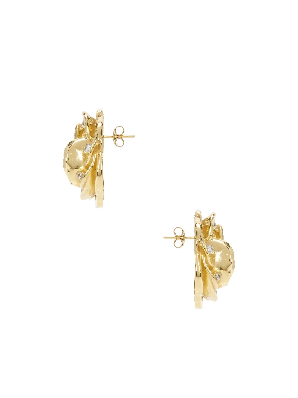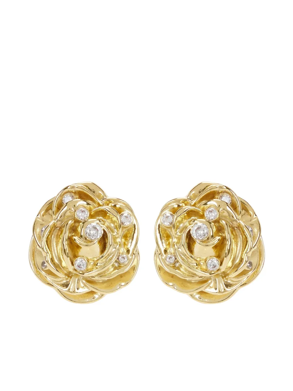 Золотистый оттенок узор с розами декорированы кристаллами застежка-гвоздик текстурированная поверхность Серьги идут в паре. Обычное ежедневное ношение и внешние воздействия могут снижать блеск драгоценных камней и золотых поверхностей. Для ухода используйте специальные неабразивные средства, предназначенные для чистки ювелирных изделий.