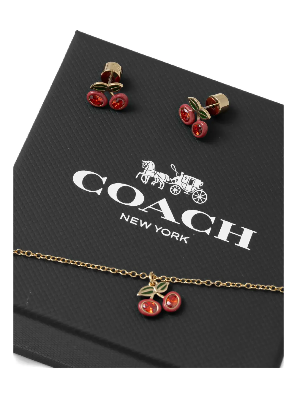 Комплект: ожерелье и серьги с подвеской в виде вишен Coach, золотистый