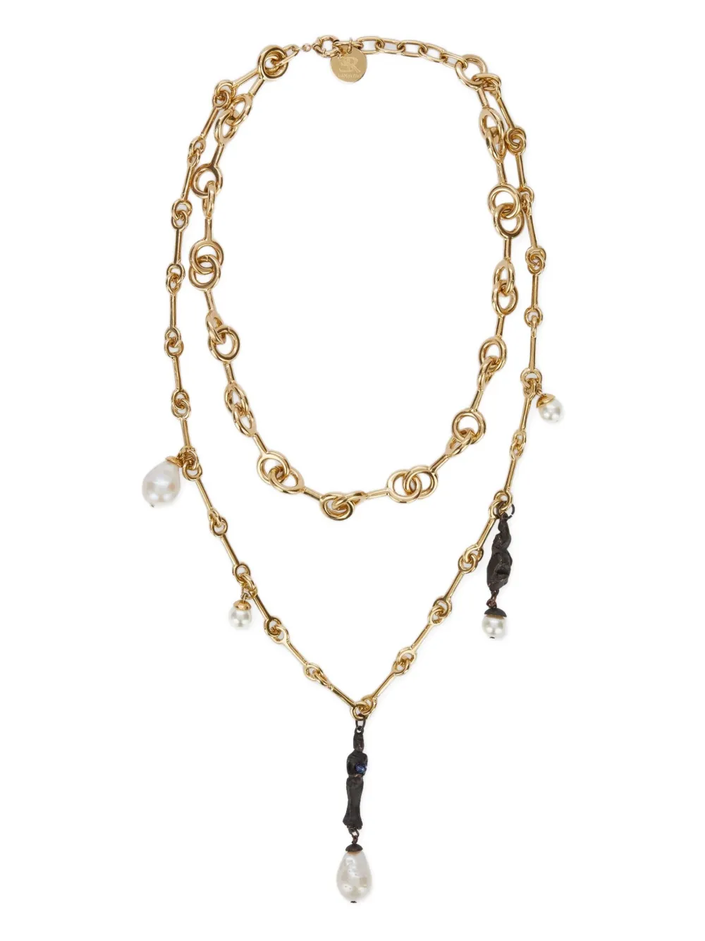 Золото двойная цепочка барочные жемчужины декоративные камни цепочное плетение подвеска