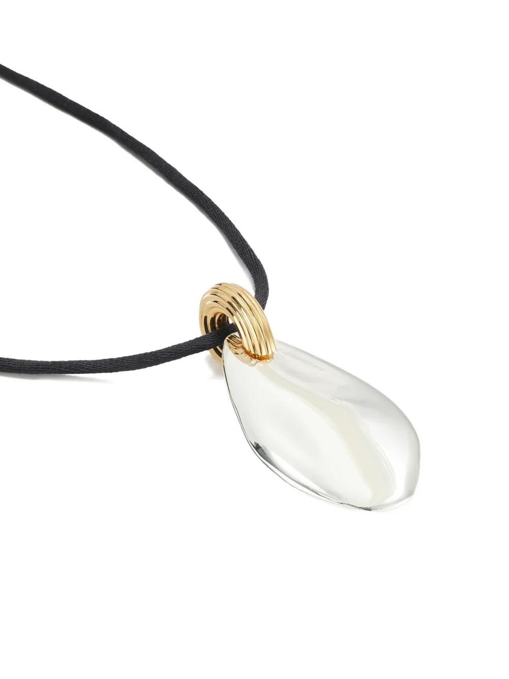 Светло-серебристый подвеска-капля, кольцо с золотистым покрытием, черный шнур, регулируемая застежка, полированная отделка