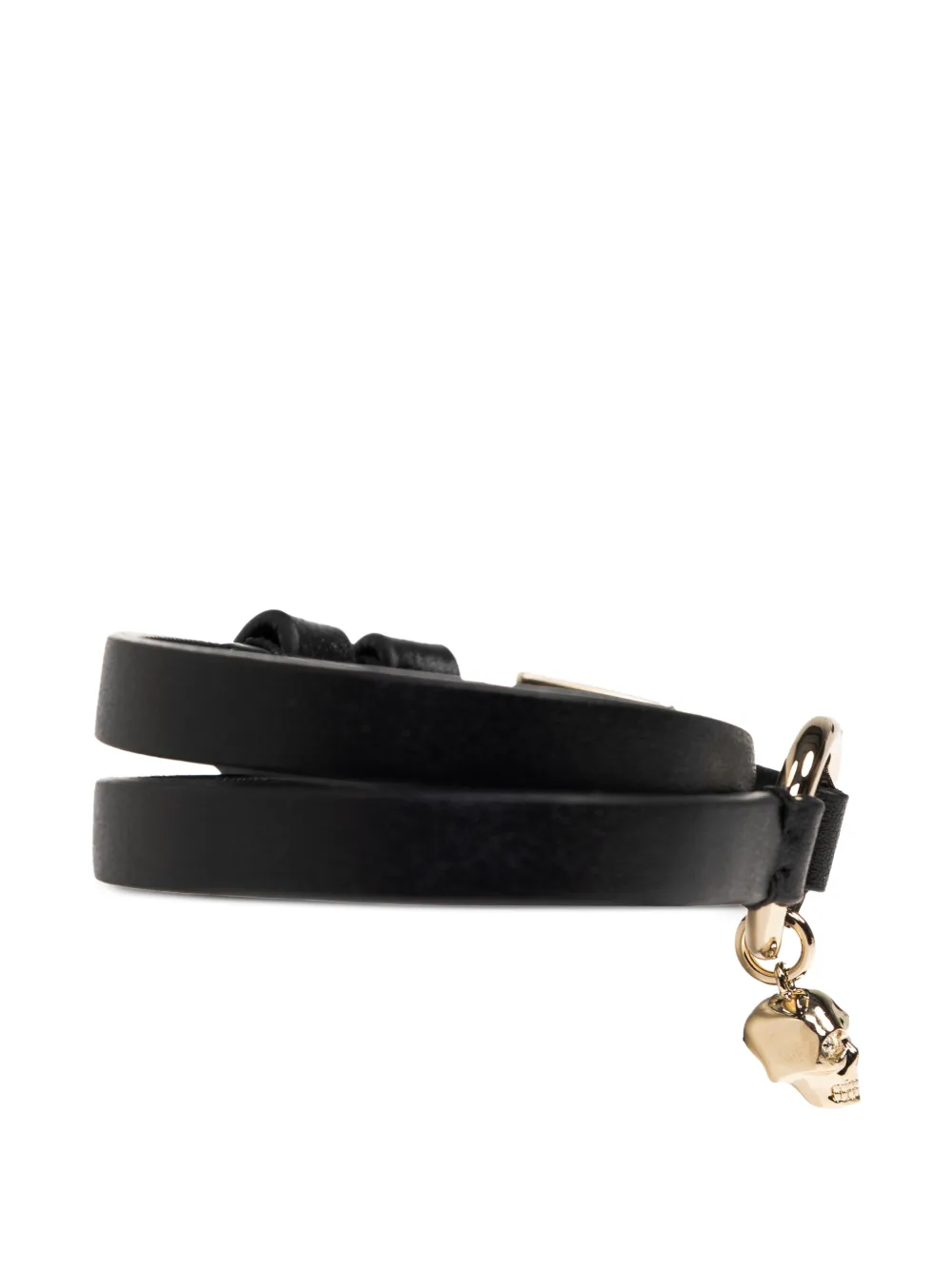 Кожаный браслет с подвеской-черепом Alexander Mcqueen, черный