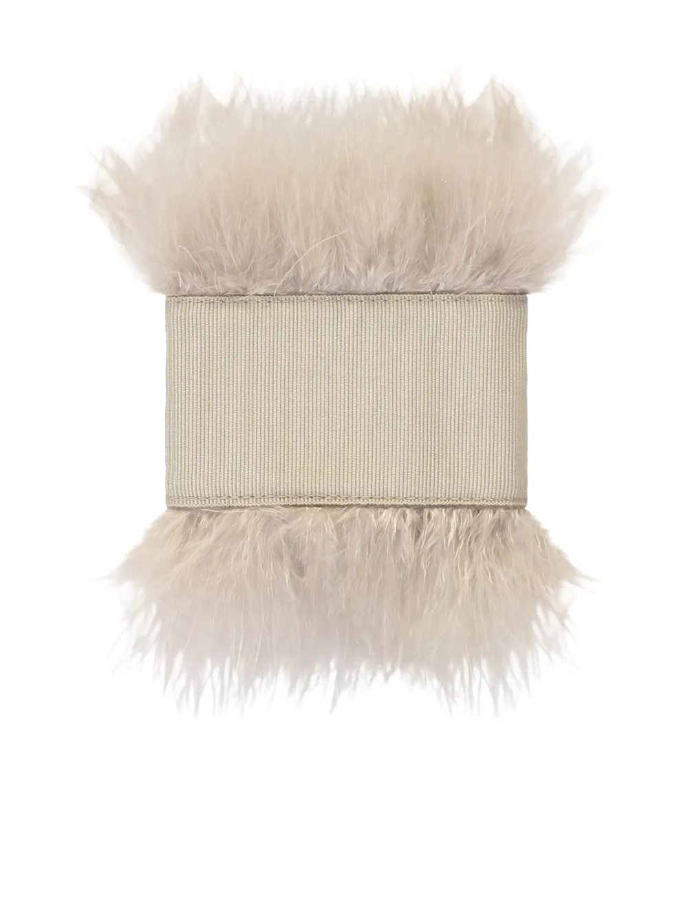 Бежевый репсовый ремешок, индюшачьи перья, тональная строчка