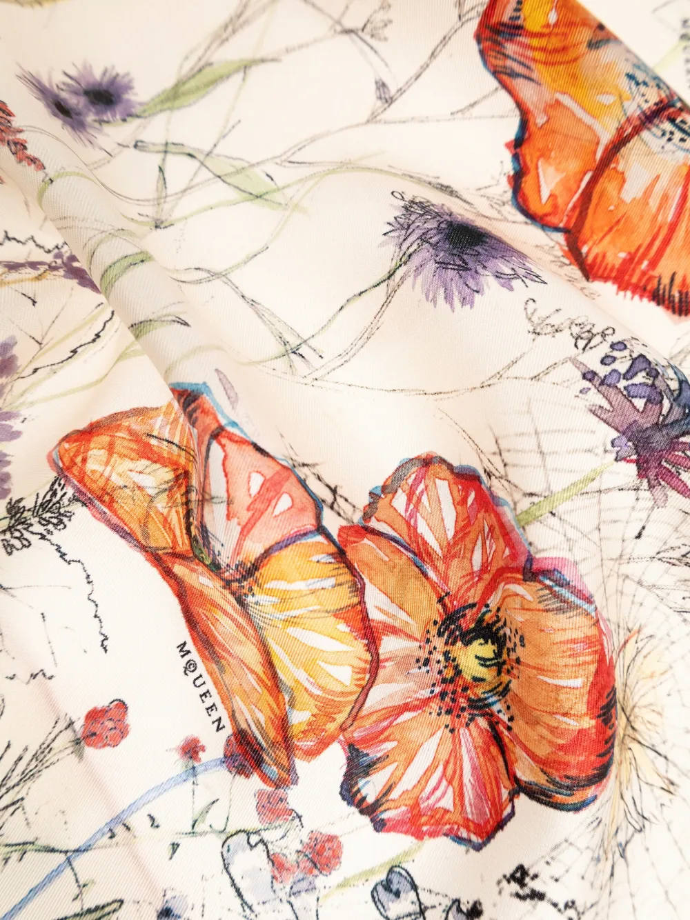 Шарф с цветочным принтом Alexander Mcqueen, нейтральный 40 383₽