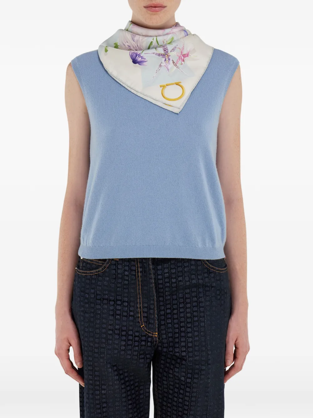Шелковый платок с принтом Gaia Ferragamo, синий
