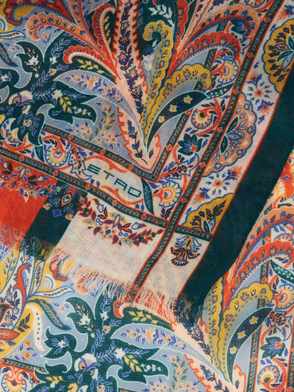 Разноцветный, кашемир, принт пейсли, регулируемый дизайн и необработанные края.