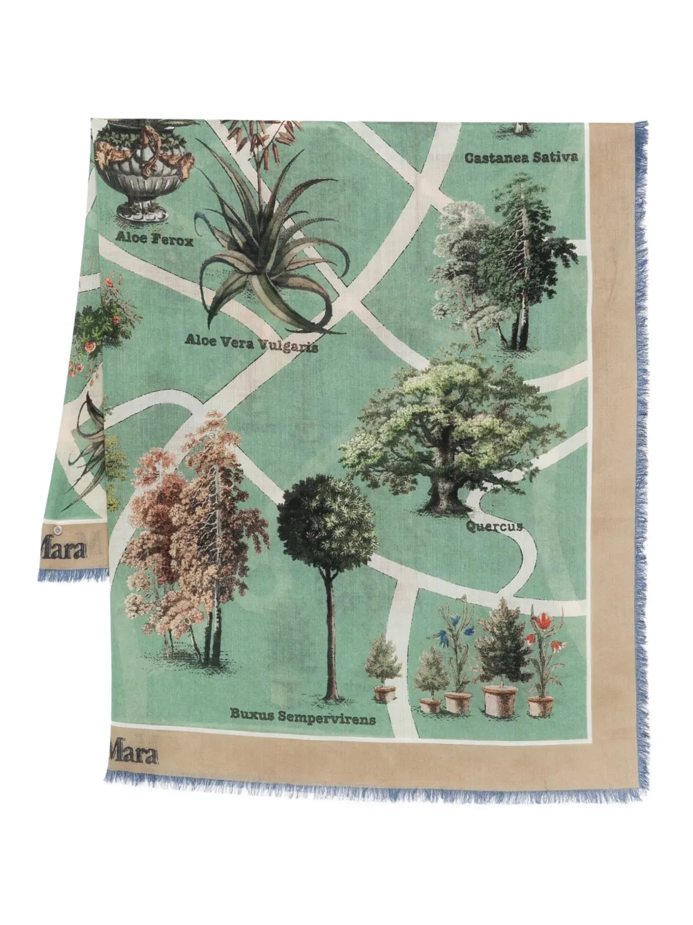 Шарф FRIDA с бахромой и принтом Max Mara, синий