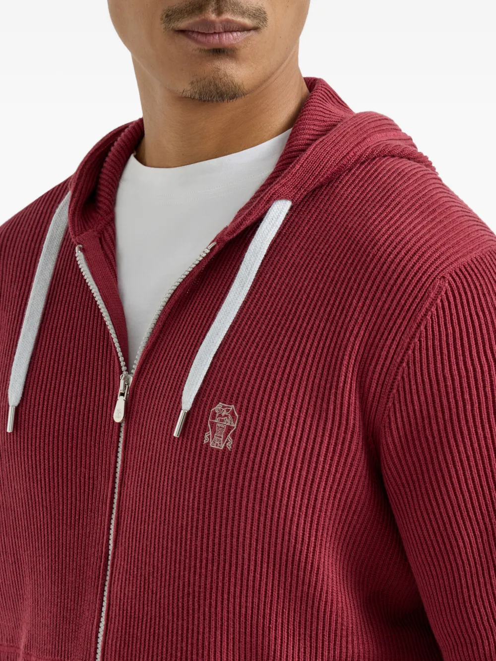 Худи English-rib на молнии Brunello Cucinelli, красный