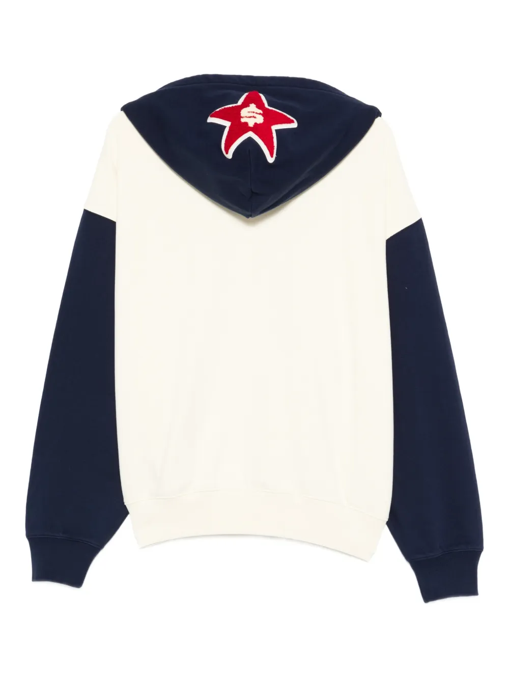 Бежевый худи с завязками, длинными рукавами, передним карманом и аппликацией на спине