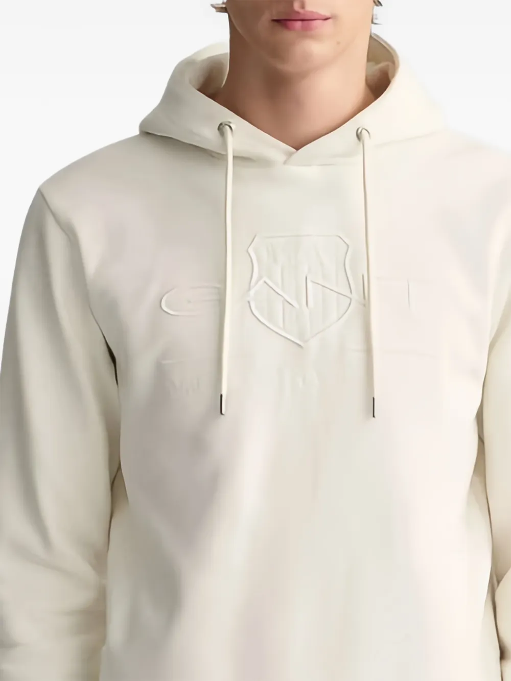 Бежевый худи на завязках, длинные рукава, ребристый пояс, ребристые манжеты, однотонный логотип
