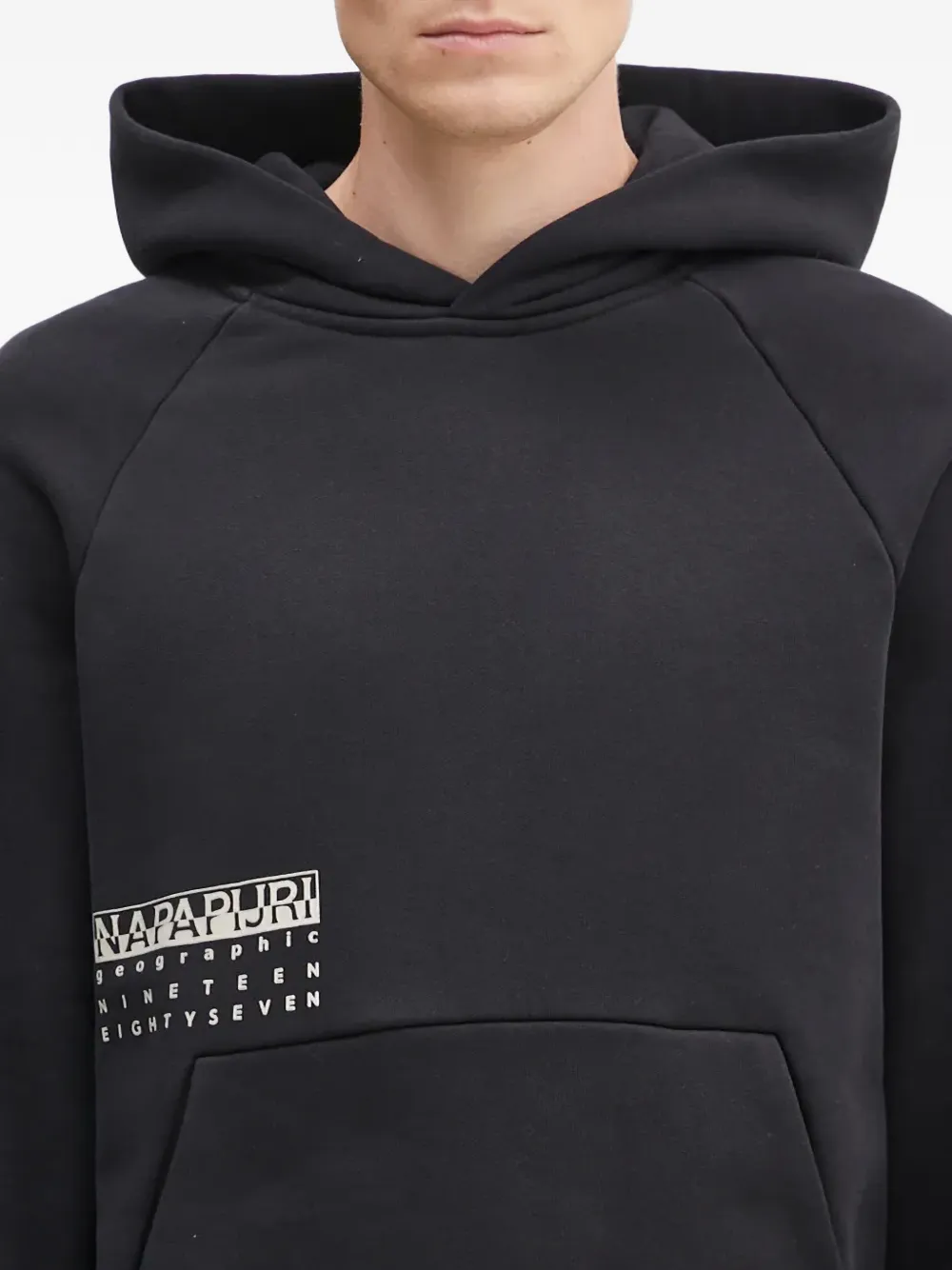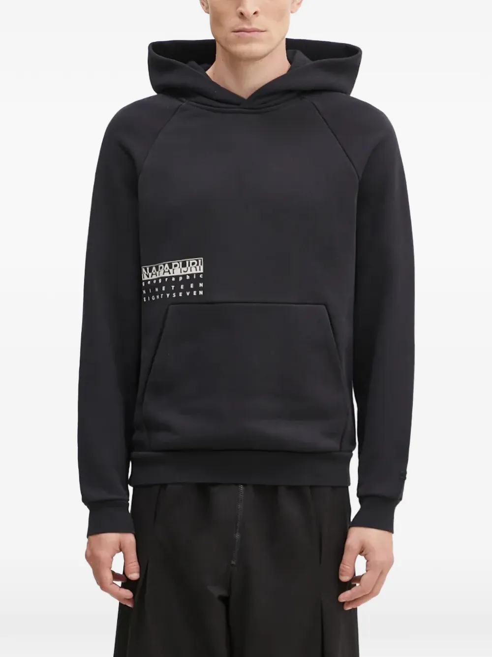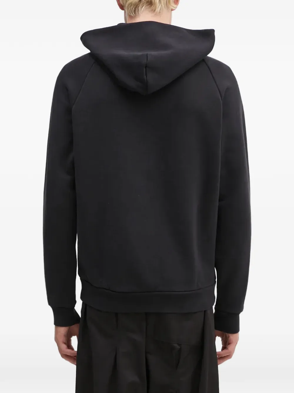Черный худи с рукавами реглан, ребристым подолом и манжетами