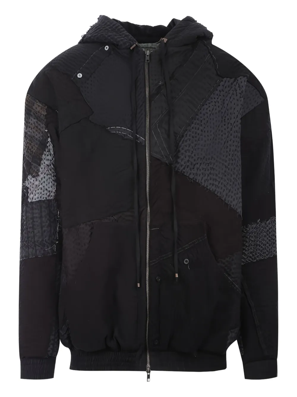 Худи на молнии в технике пэчворк By Walid, черный 105 663₽