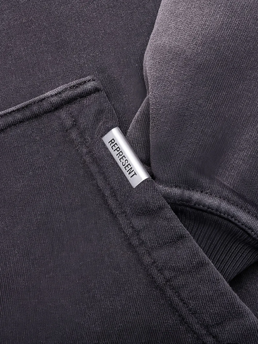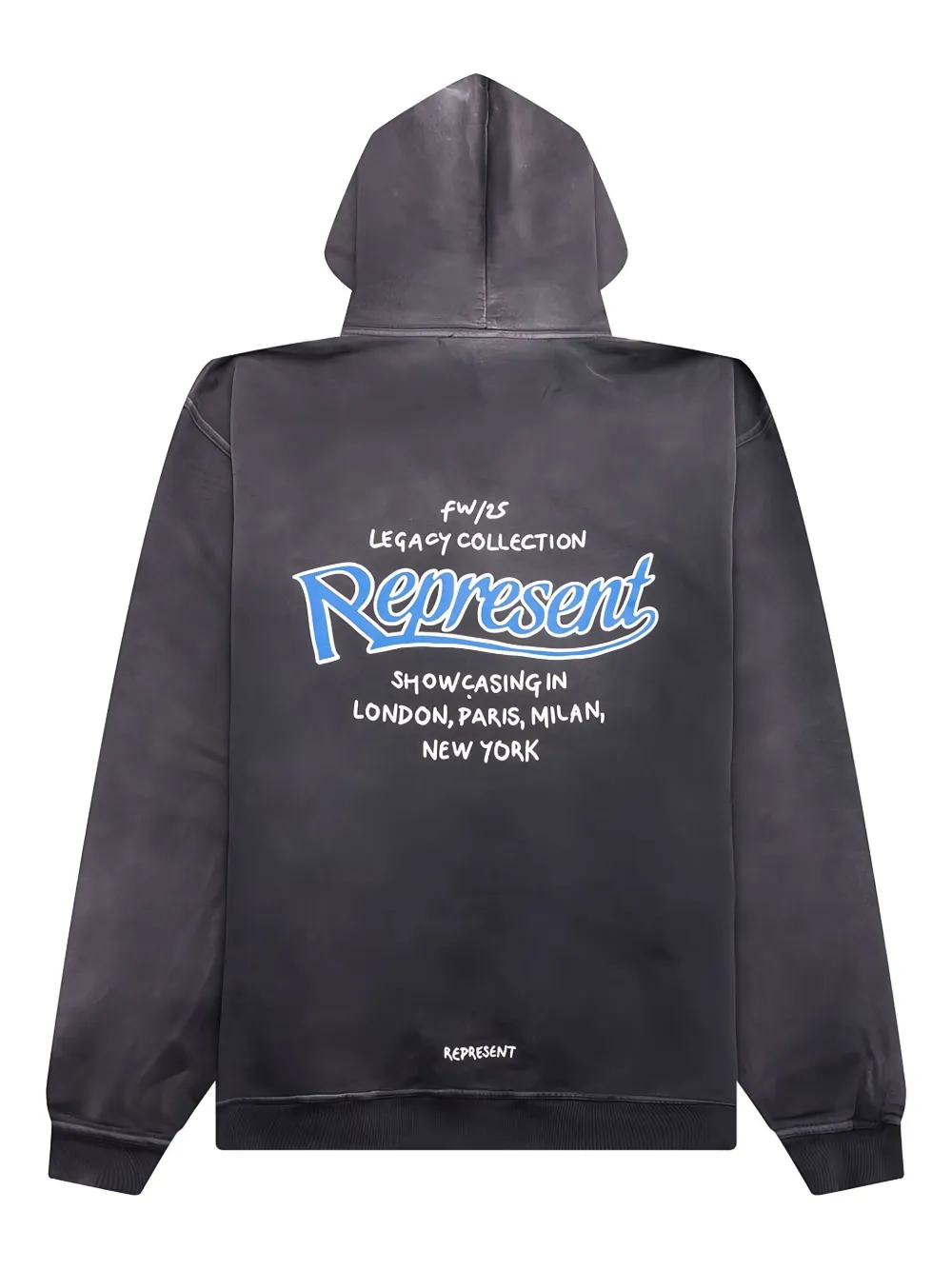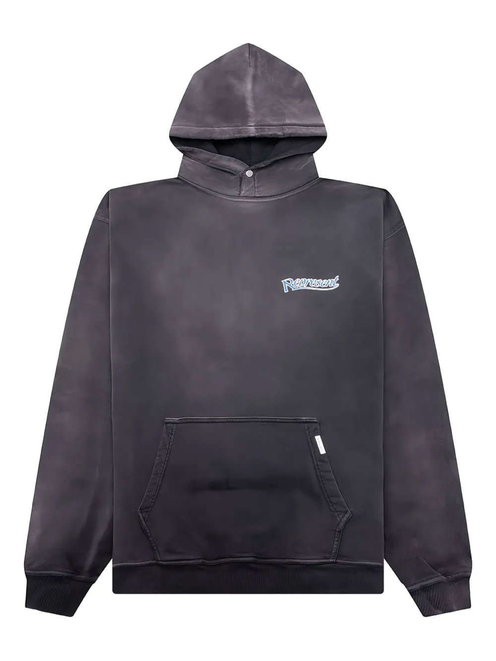 Черный худи с логотипом, передним карманом-кенгуру, капюшоном, длинными рукавами и ребристым краем