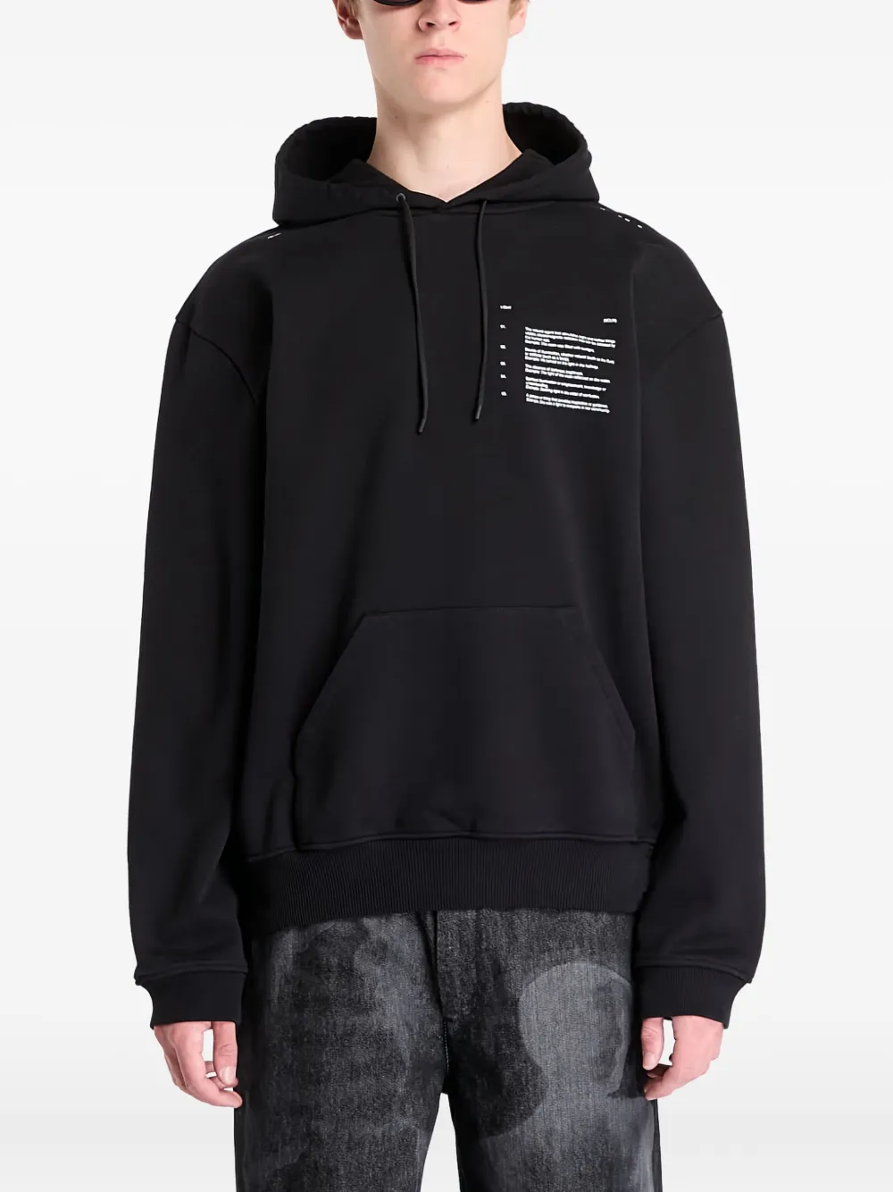Черный цвет, кулиска на капюшоне, передний карман-кенгуру, принт спереди, принт сзади