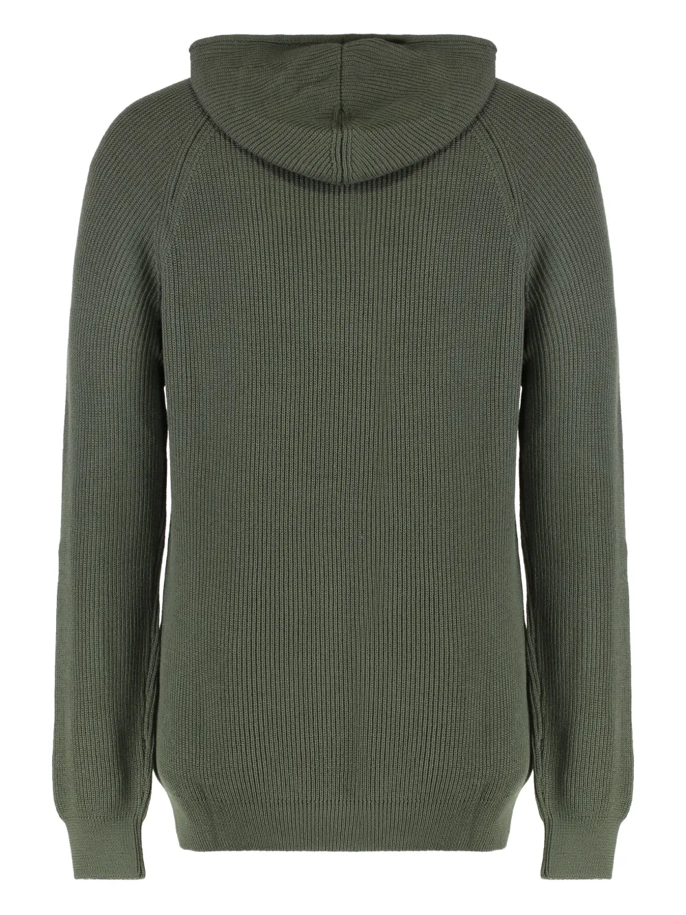 Зеленый вязаный в рубчик капюшон рукава-реглан шнурки длинные рукава