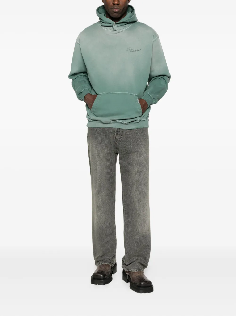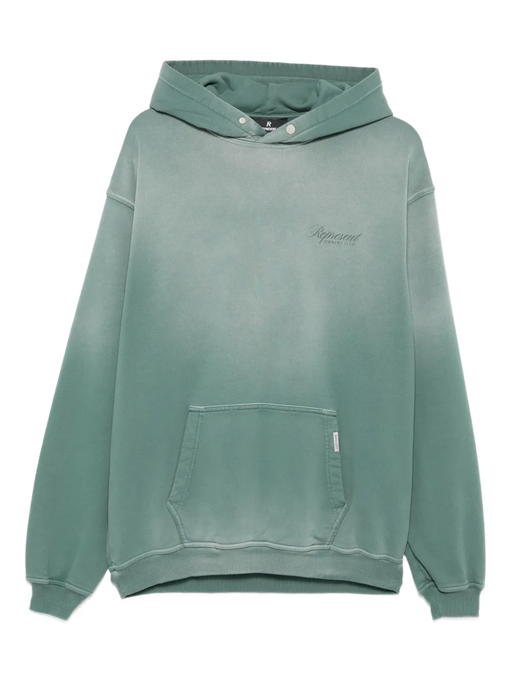 Зеленое худи с карманом-кенгуру, заниженными плечами и длинными рукавами