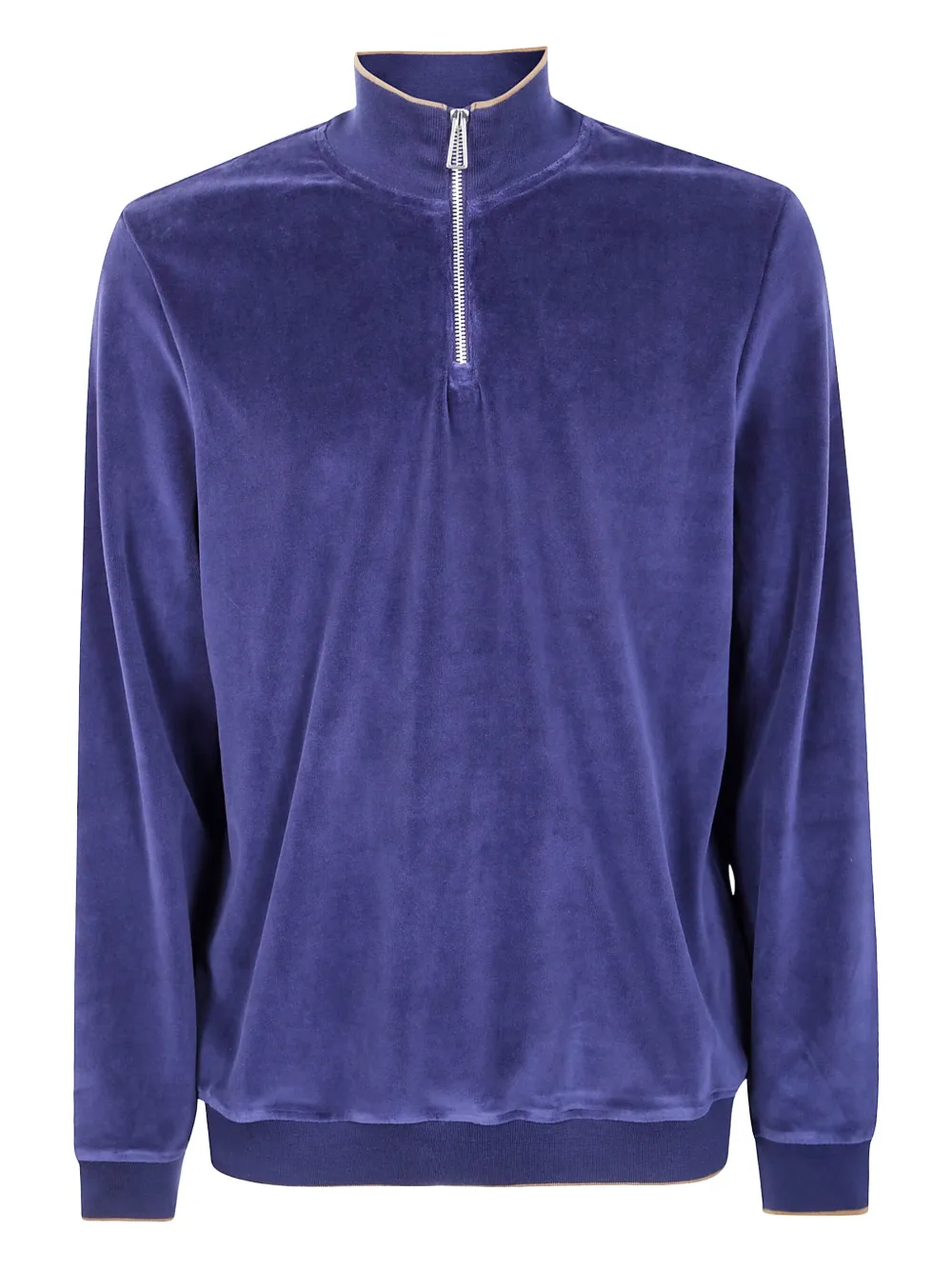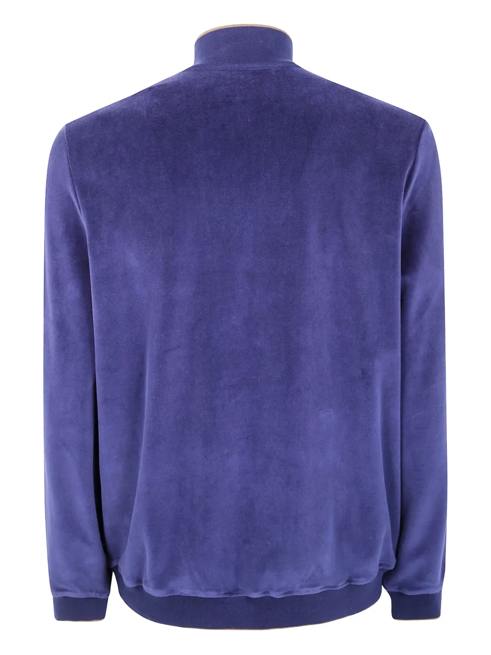 Синий, ребристый низ, ребристые манжеты, высокий воротник, застежка-молния, велюровая текстура