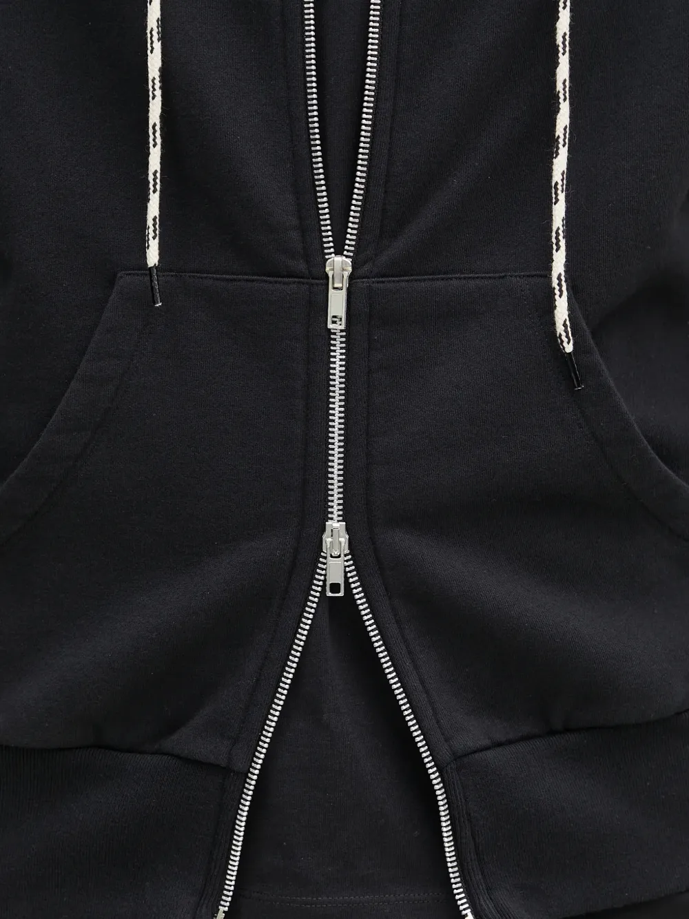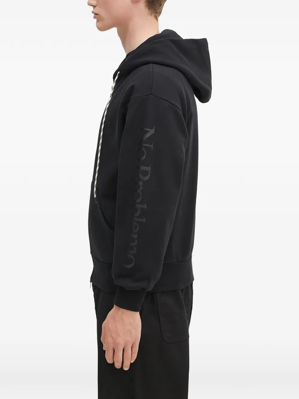 Черный цвет, шнурок на капюшоне, передний карман-кенгуру, логотип, застежка-молния, манжеты в рубчик