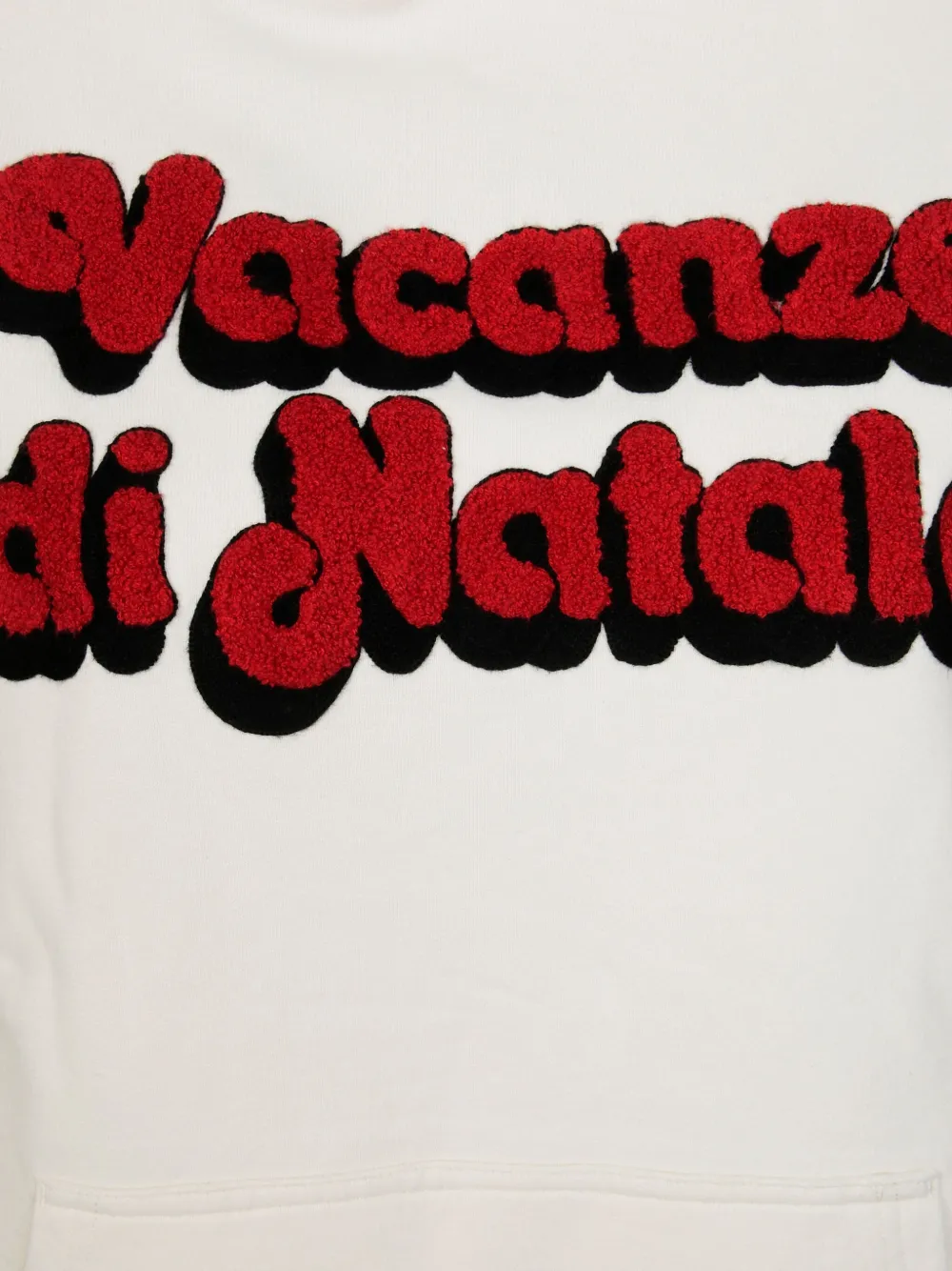 Светло-бело́го цвета худи с капюшоном, передним карманом-кенгуру, рубчатым подолом и манжетами