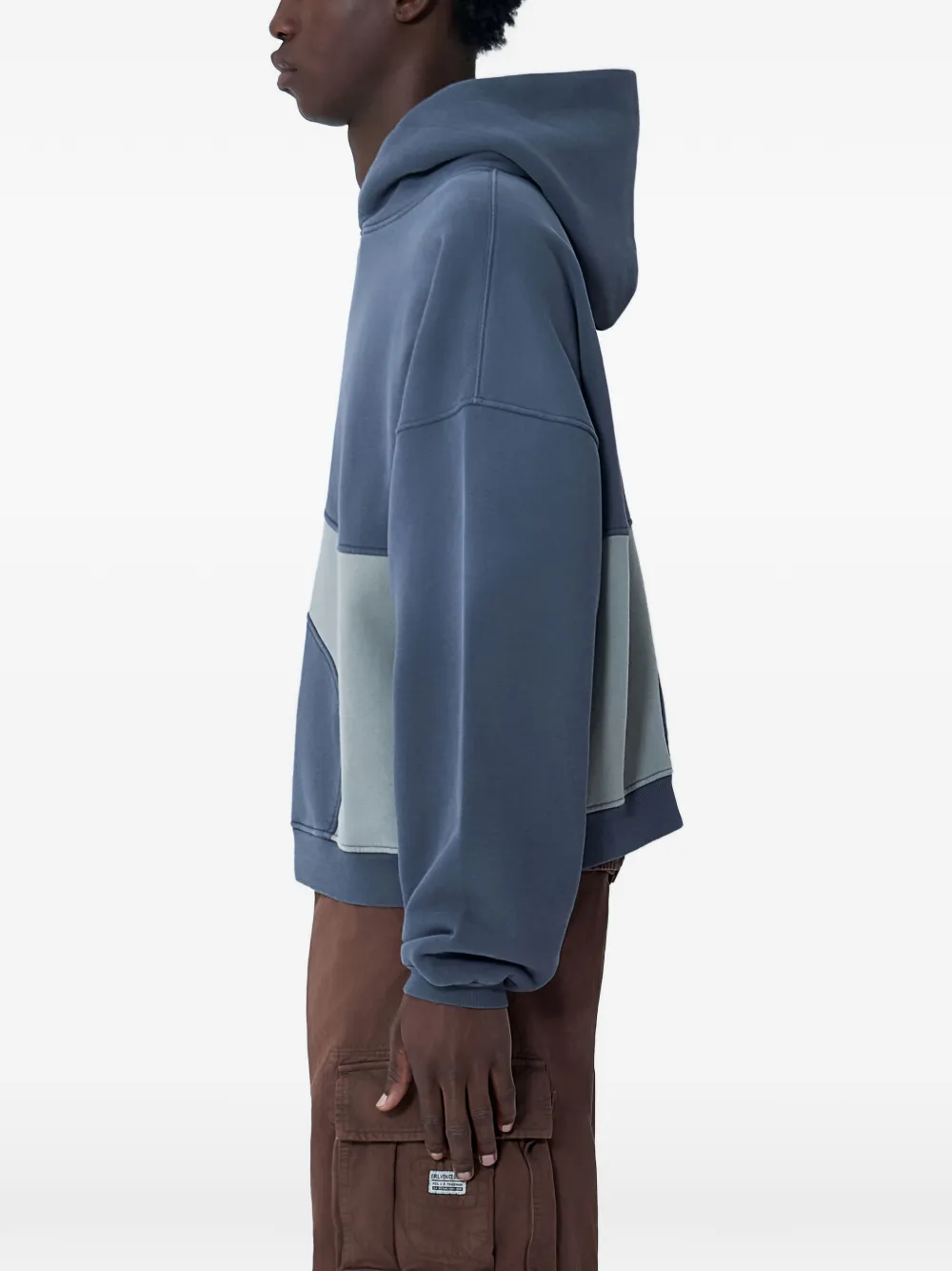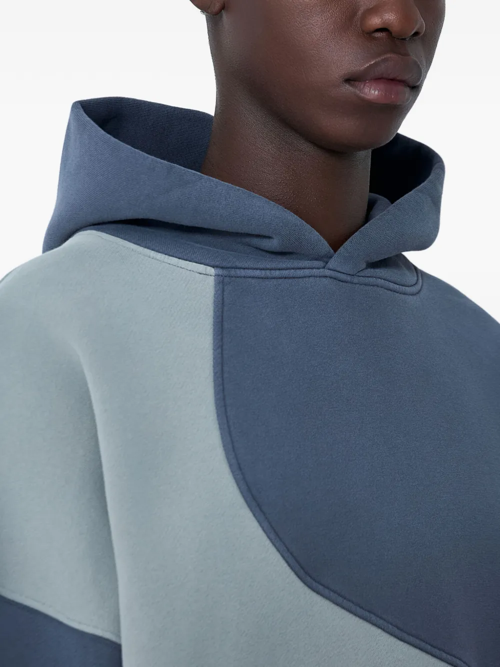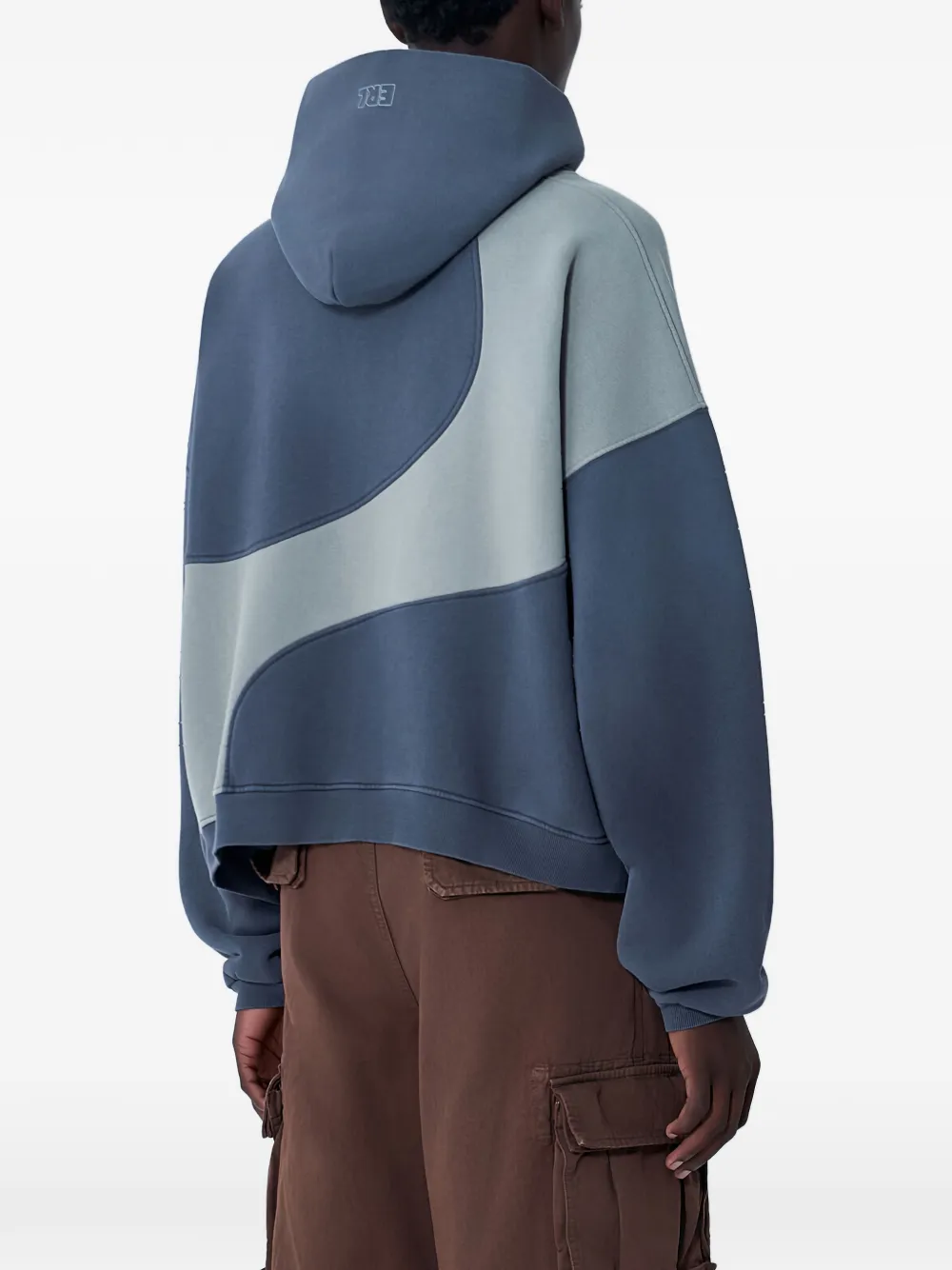 Синий узор волны, ребристые края, длинные рукава, логотип сзади, капюшон