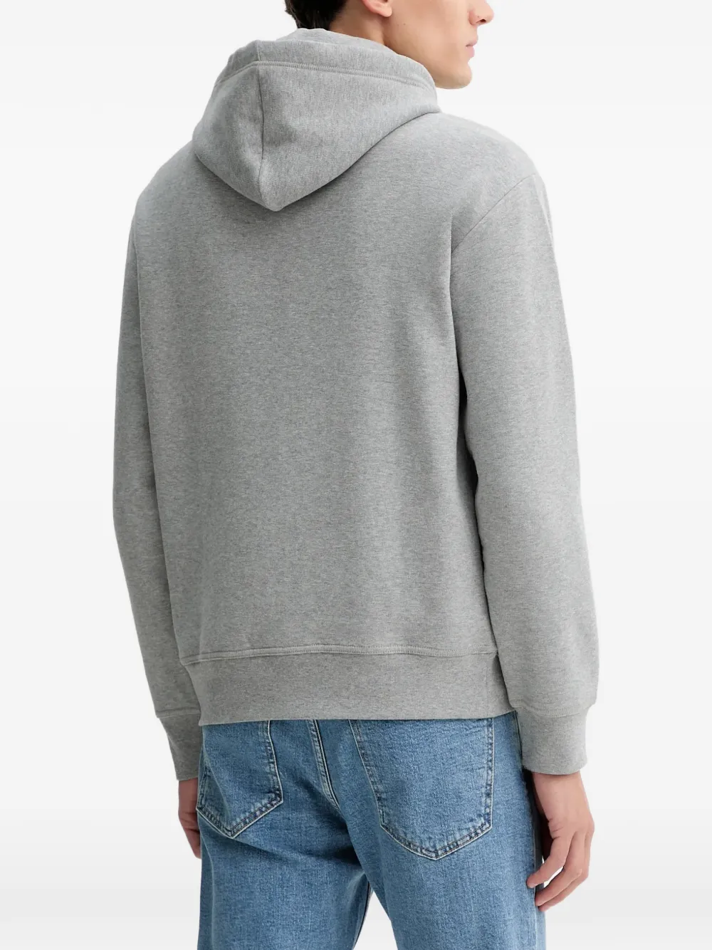 Серый худи с логотипом, кулиской, ребристыми манжетами и подолом