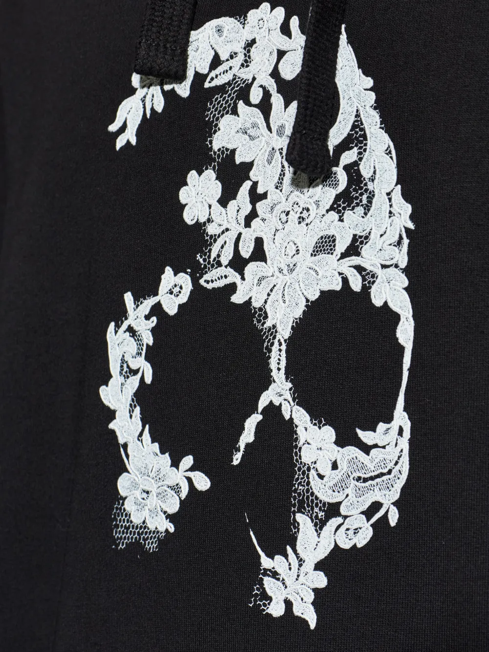 Черный с цветочным принтом, графический дизайн, капюшон со шнурком, длинные рукава, ребристый нижний край, ребристые манжеты