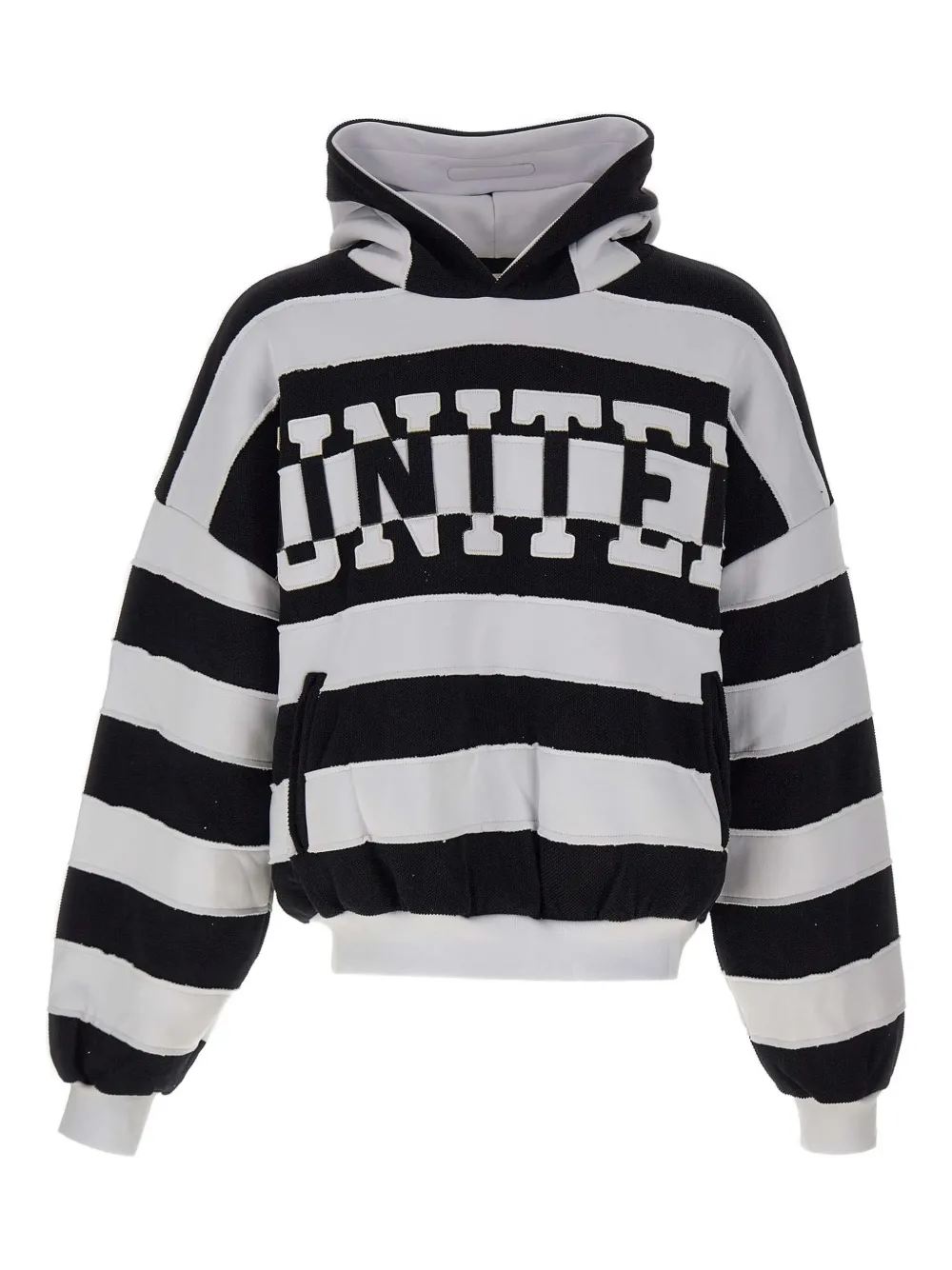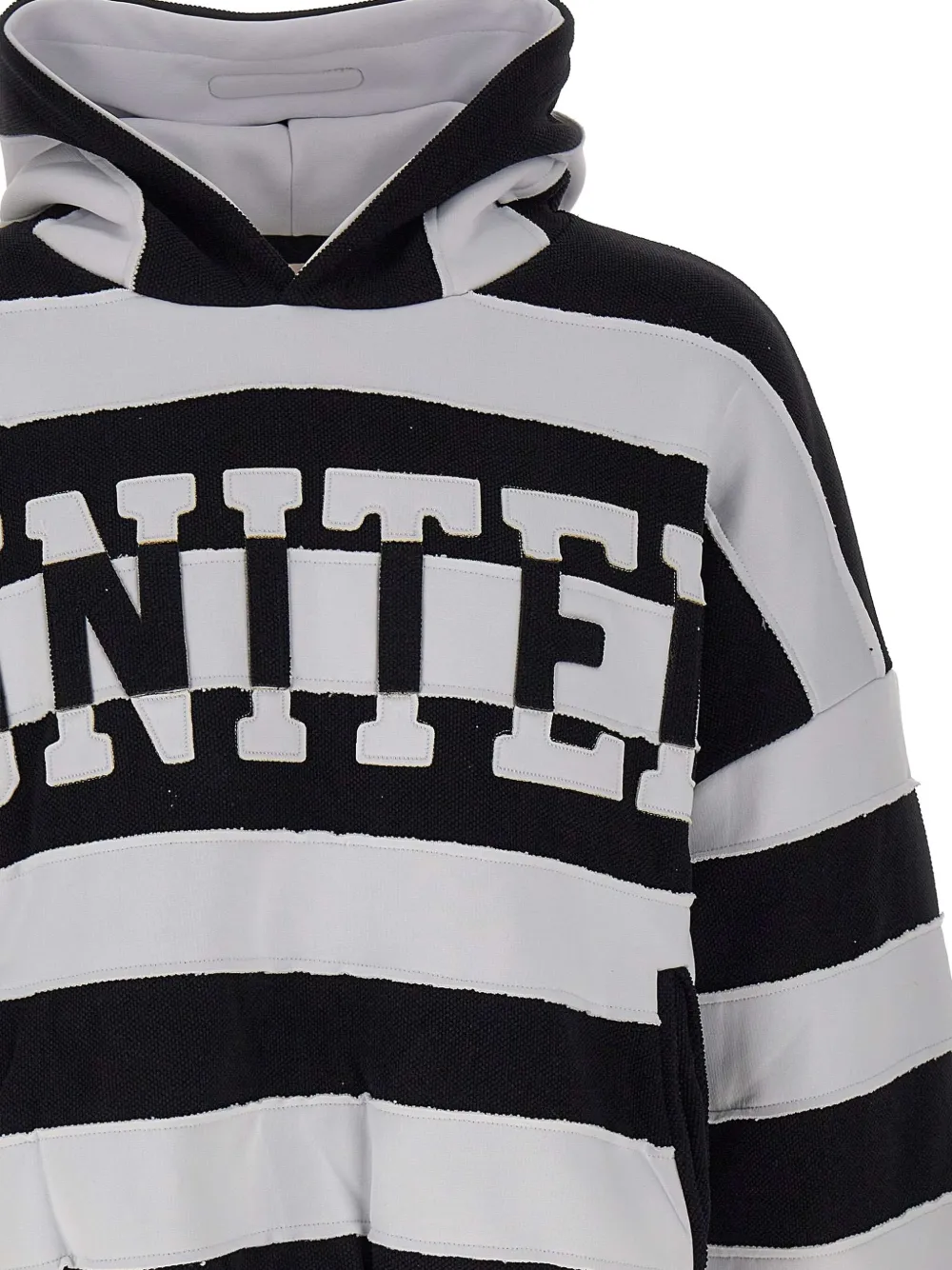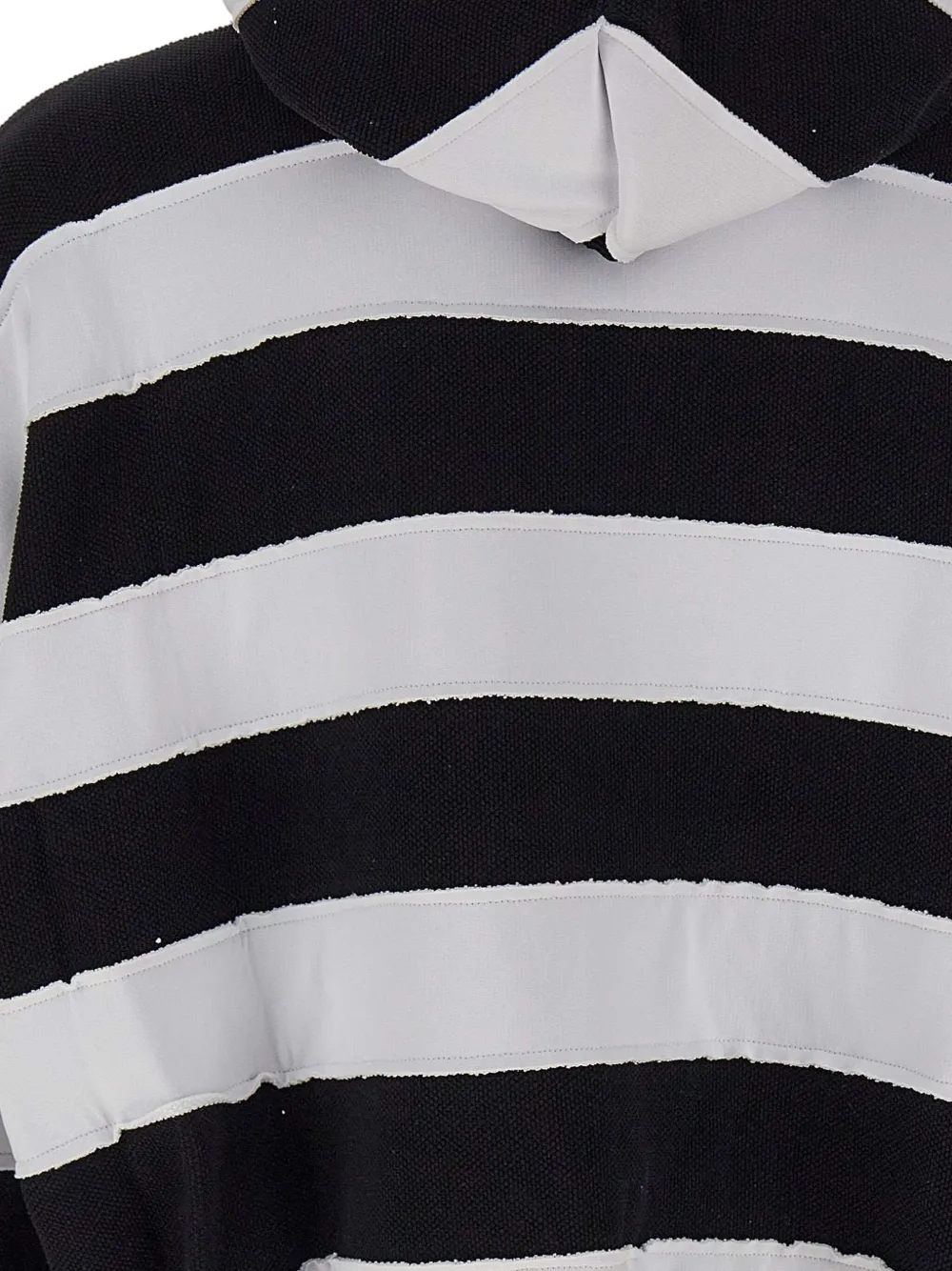 Черно-белые горизонтальные полосы, капюшон, боковые карманы, рукава-реглан