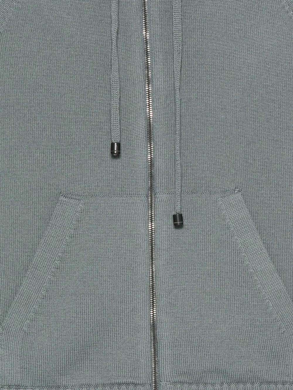 Зеленый реглан рукава застежка-молния ребристый край капюшон