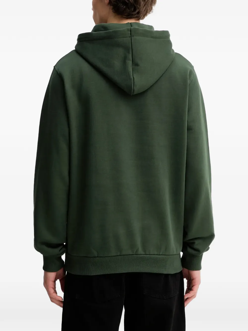 Зеленое худи с графическим принтом, кулиской, рубчатой отделкой низа и манжет, длинными рукавами, передним карманом-кенгуру