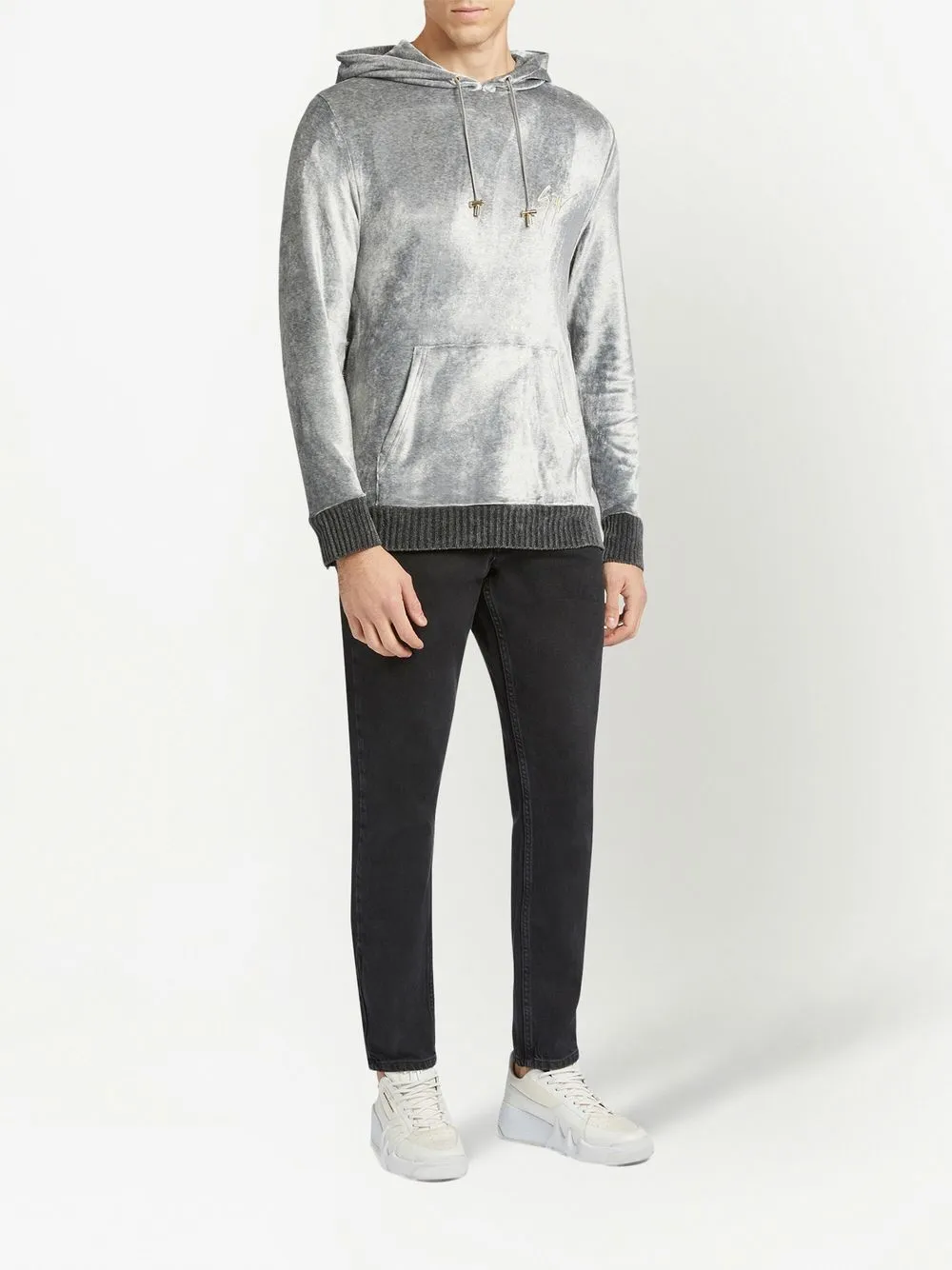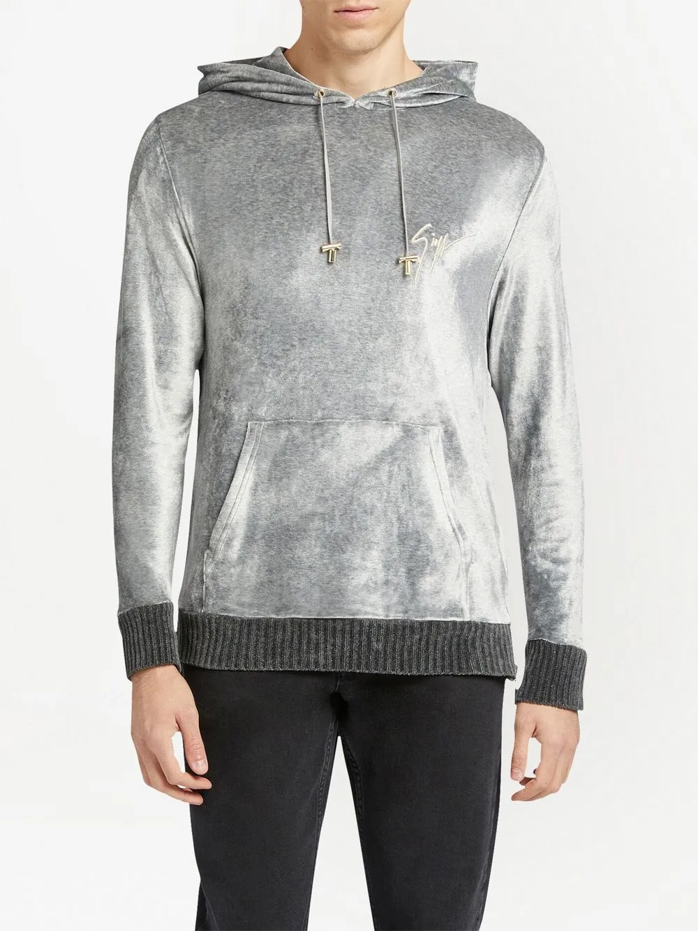 Бархатное худи с вышитым логотипом Giuseppe Zanotti, серый 27 303₽