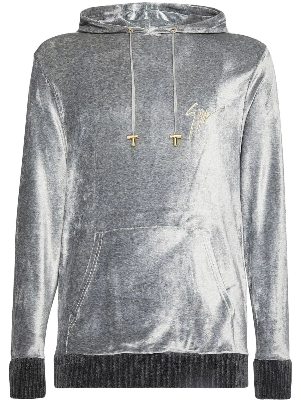 Бархатное худи с вышитым логотипом Giuseppe Zanotti, серый