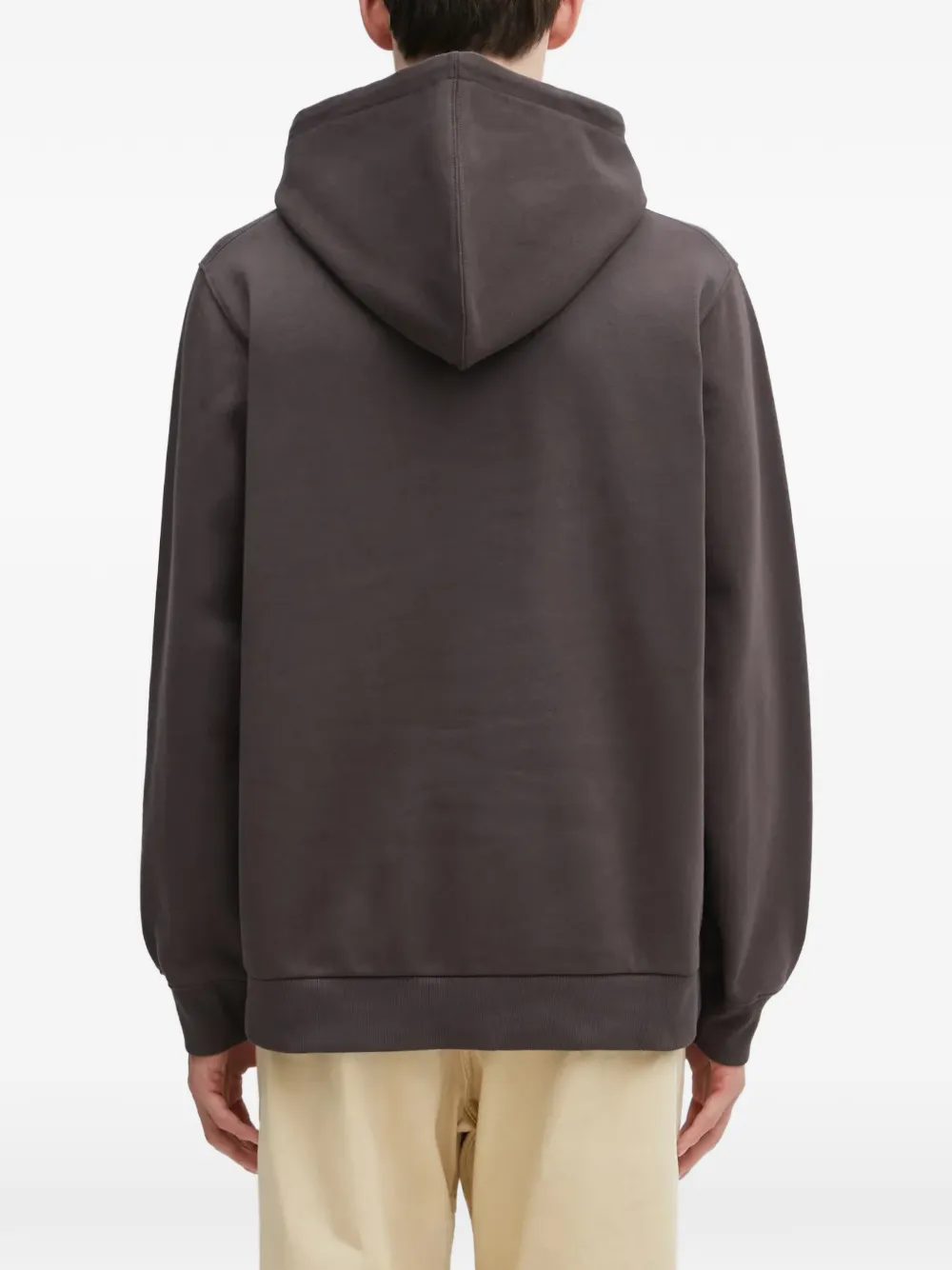 Темно-коричневый худи с логотипом, деталями, кулиской, карманом-кенгуру, ребристыми манжетами и нижним краем