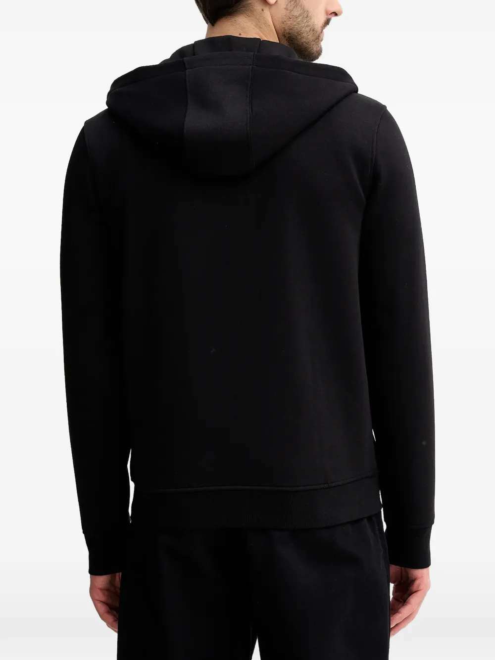 Черная толстовка на молнии, капюшон, передние карманы, логотип, длинные рукава
